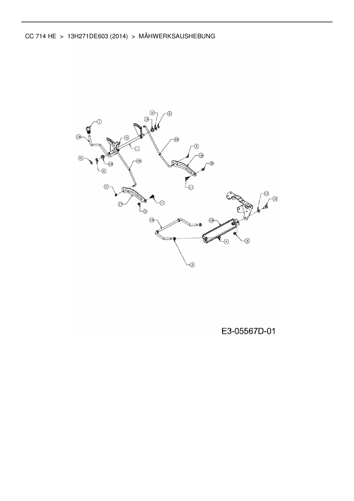 Ersatzteile für Rasentraktor Cub Cadet CC 714 HE aus der Zeichnung Mähwerksaushebung: