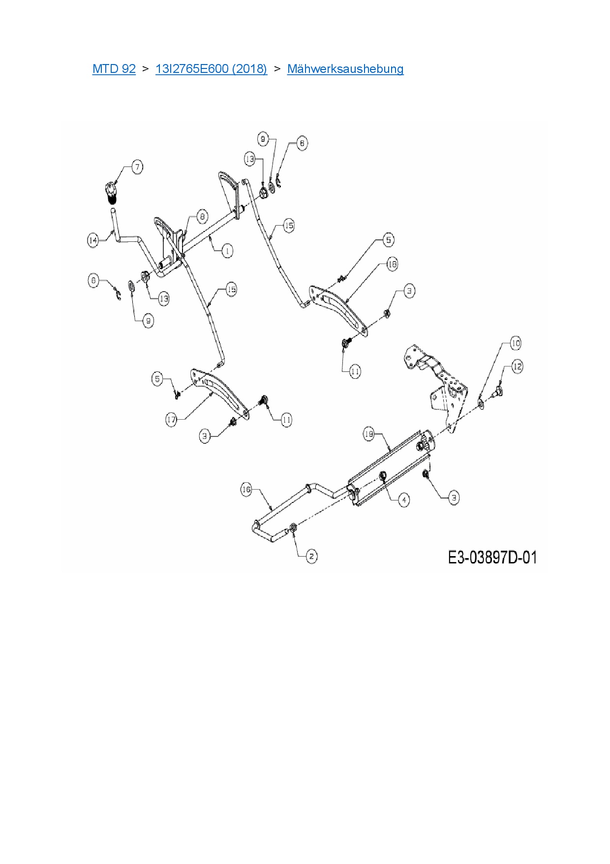 Ersatzteile für Rasentraktor MTD MTD 92 aus der Zeichnung Mähwerksaushebung: