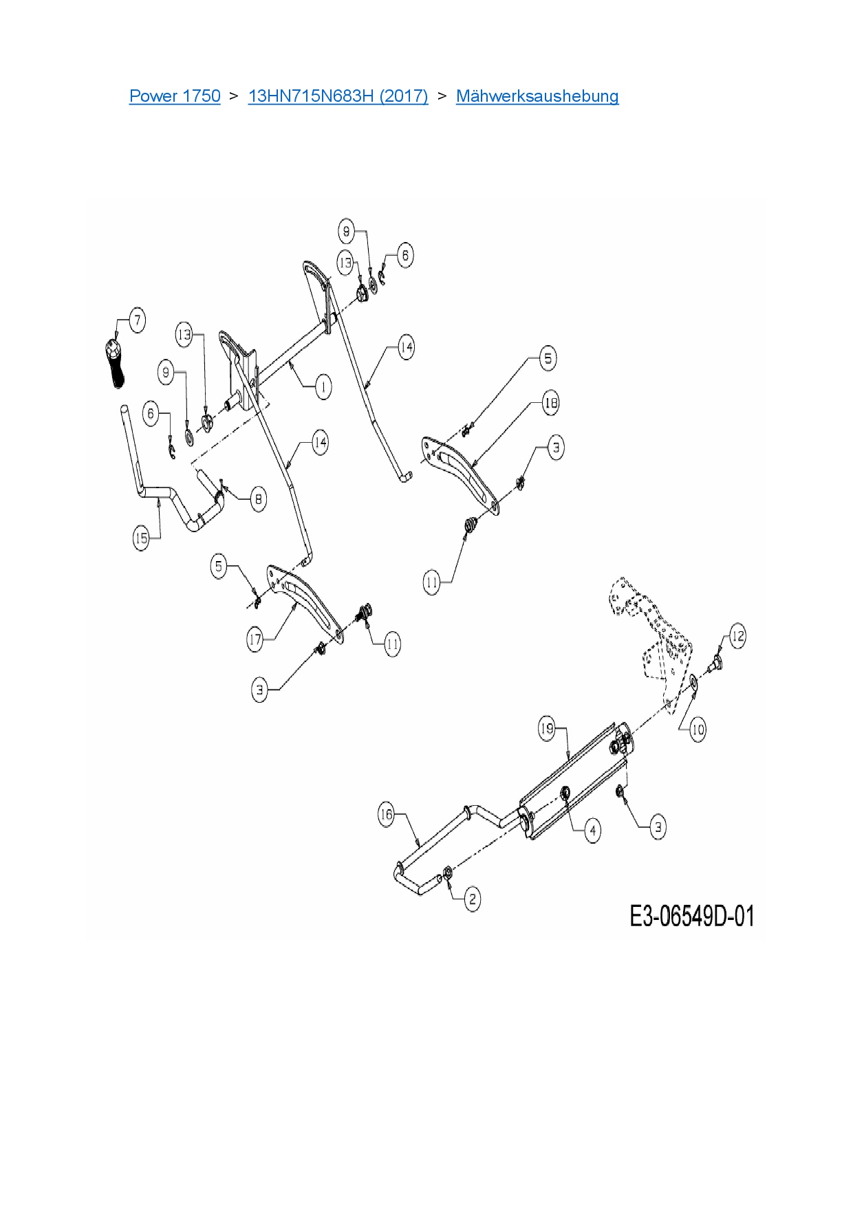 Ersatzteile für Rasentraktor MTD Power 1750 aus der Zeichnung Mähwerksaushebung: