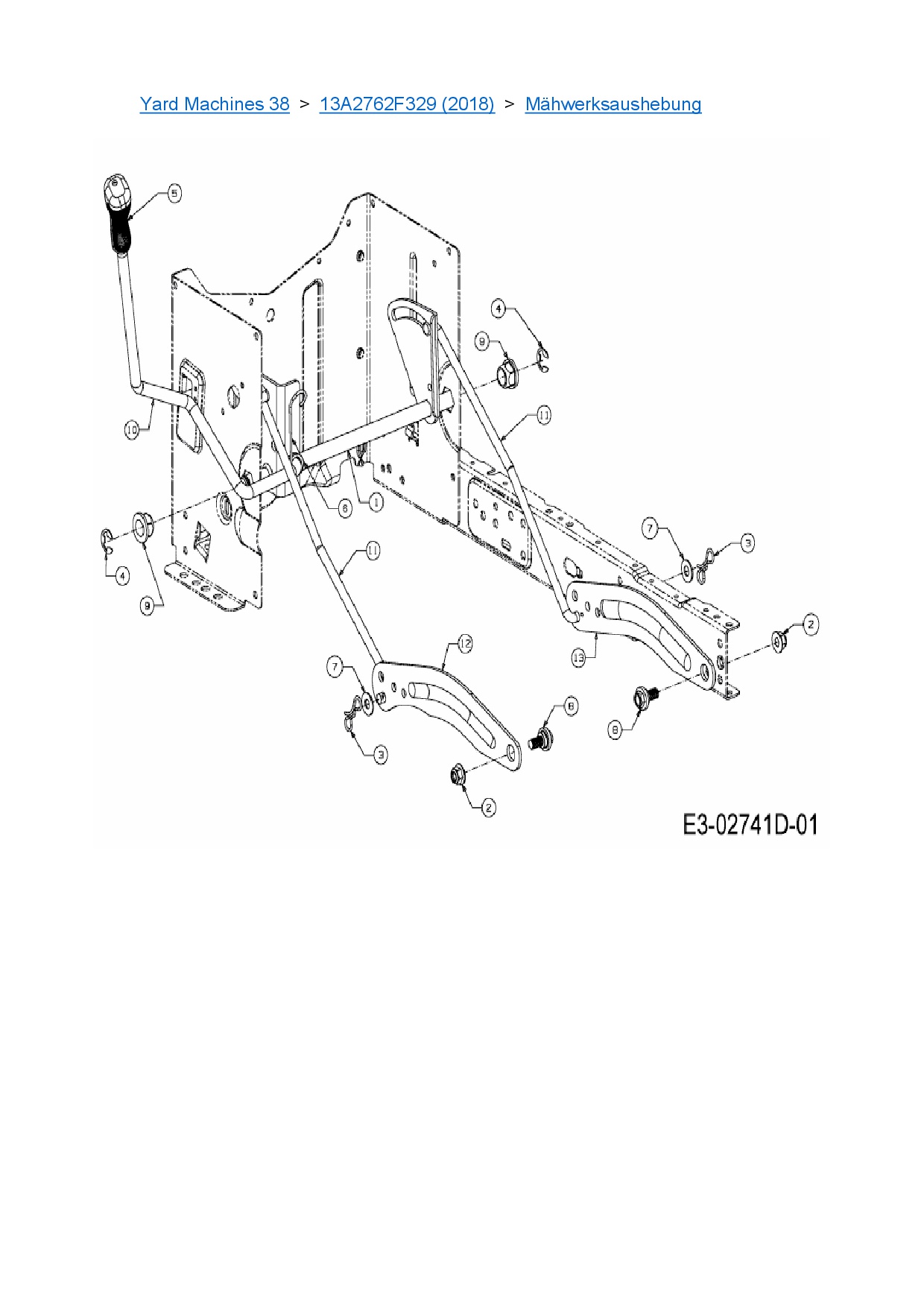 Ersatzteile für Rasentraktor MTD Yard Machines 38 aus der Zeichnung Mähwerksaushebung: