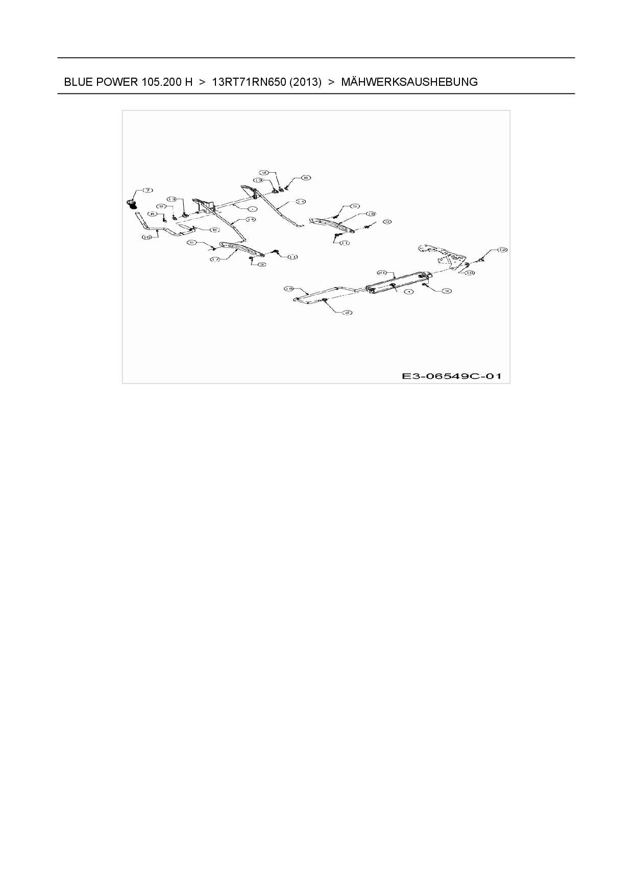 Ersatzteile für Rasentraktor Wolf-Garten Blue Power 105.200 H aus der Zeichnung Mähwerksaushebung: