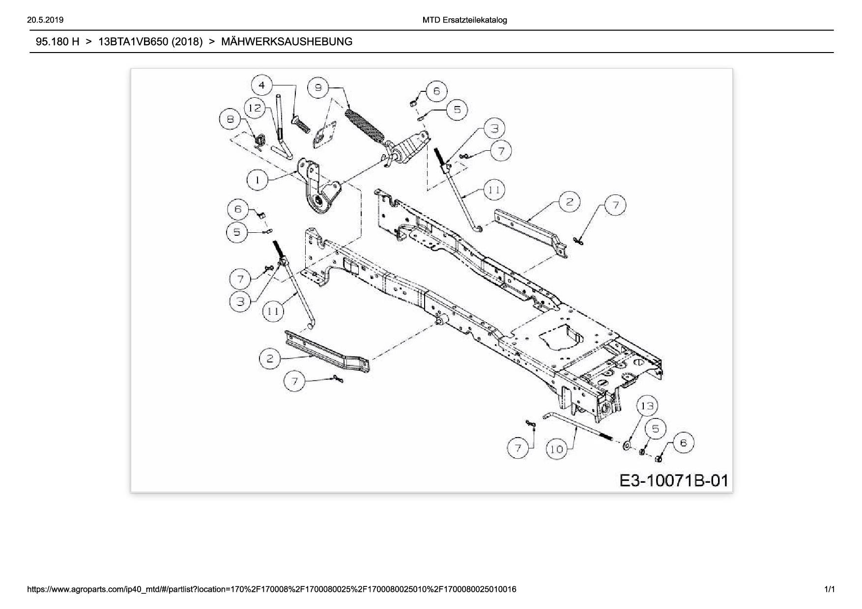 Ersatzteile für Rasentraktor Wolf-Garten Expert 95.180 H aus der Zeichnung Mähwerksaushebung: