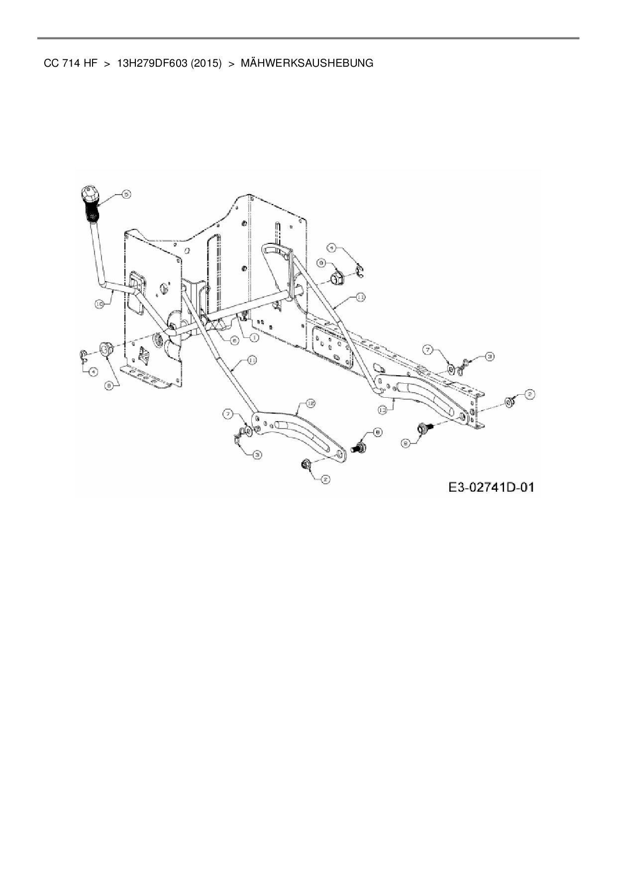 Ersatzteile für Rasentraktor Cub Cadet CC 714 HF aus der Zeichnung Mähwerksaushebung: