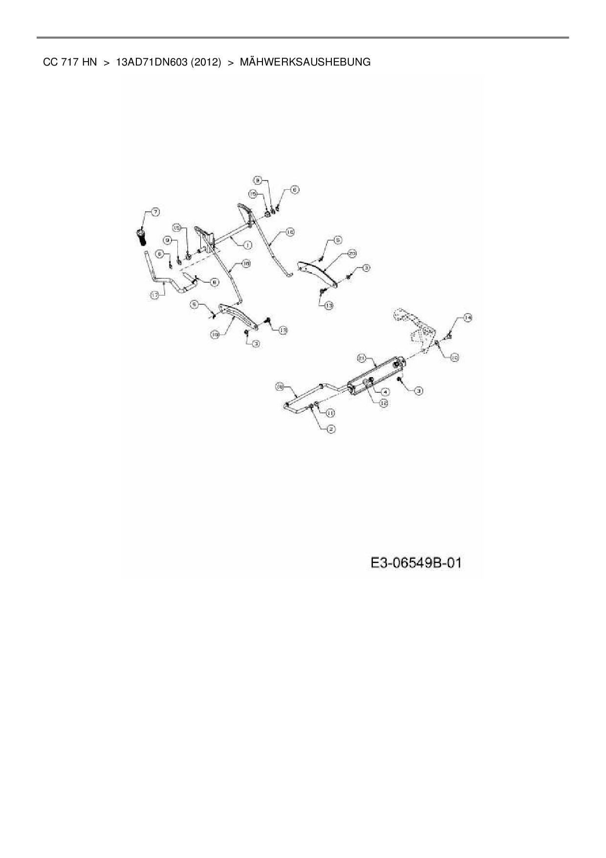 Ersatzteile für Rasentraktor Cub Cadet CC 717 HN aus der Zeichnung Mähwerksaushebung:
