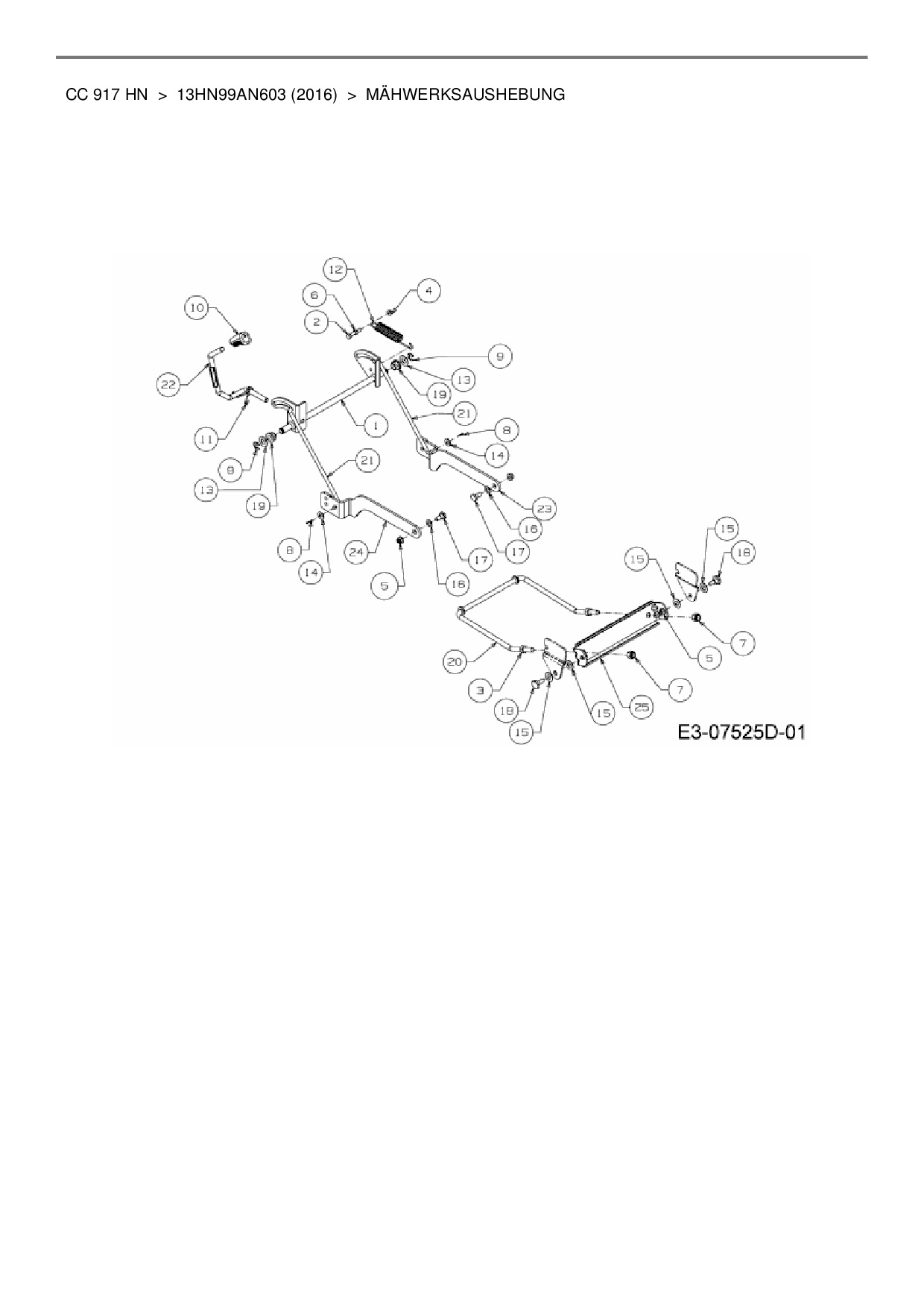 Ersatzteile für Rasentraktor Cub Cadet CC 917 HN aus der Zeichnung Mähwerksaushebung: