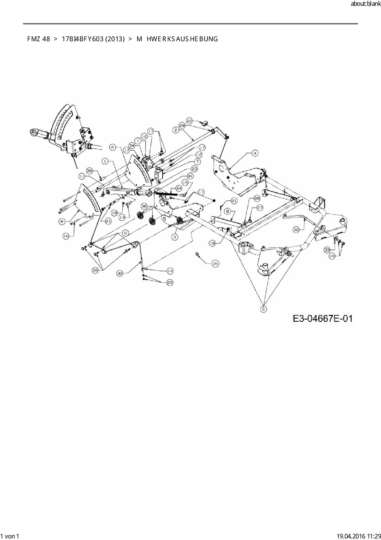 Download Ersatzteil-Zeichnung Cub Cadet FMZ 48 Zeichnung Mähwerksaushebung (PDF-Format)