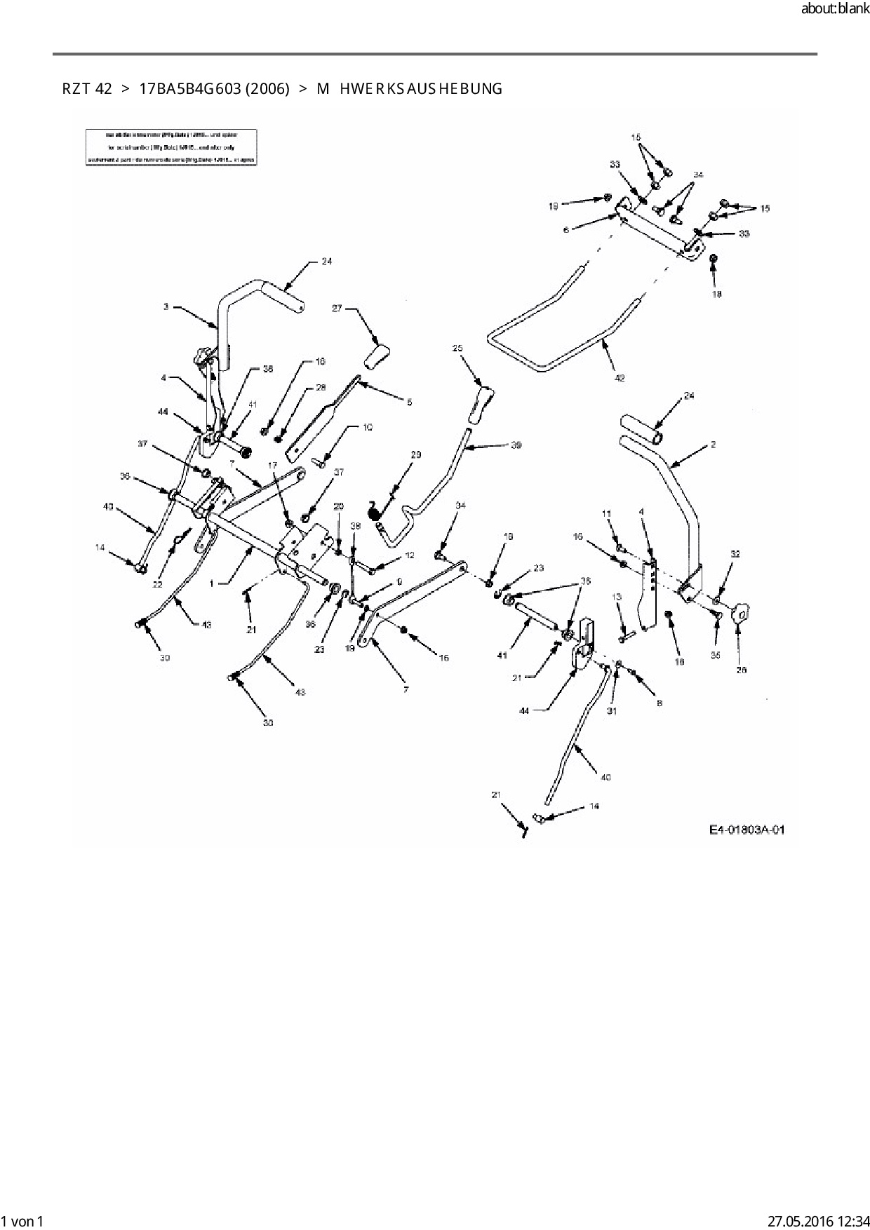 Download Ersatzteil-Zeichnung Cub Cadet RZT 42 Zeichnung Mähwerksaushebung (PDF-Format)