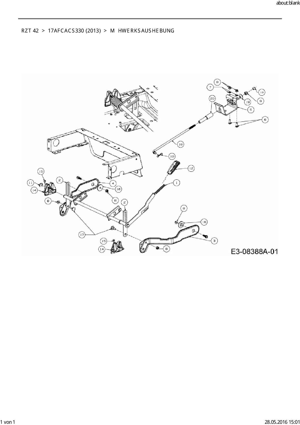 Ersatzteile für Zero Turn Cub Cadet RZT 42 aus der Zeichnung Mähwerksaushebung: