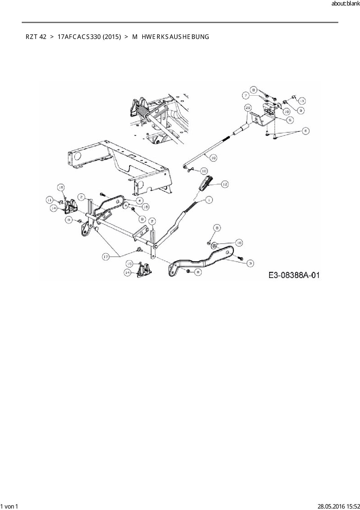 Ersatzteile für Zero Turn Cub Cadet RZT 42 aus der Zeichnung Mähwerksaushebung: