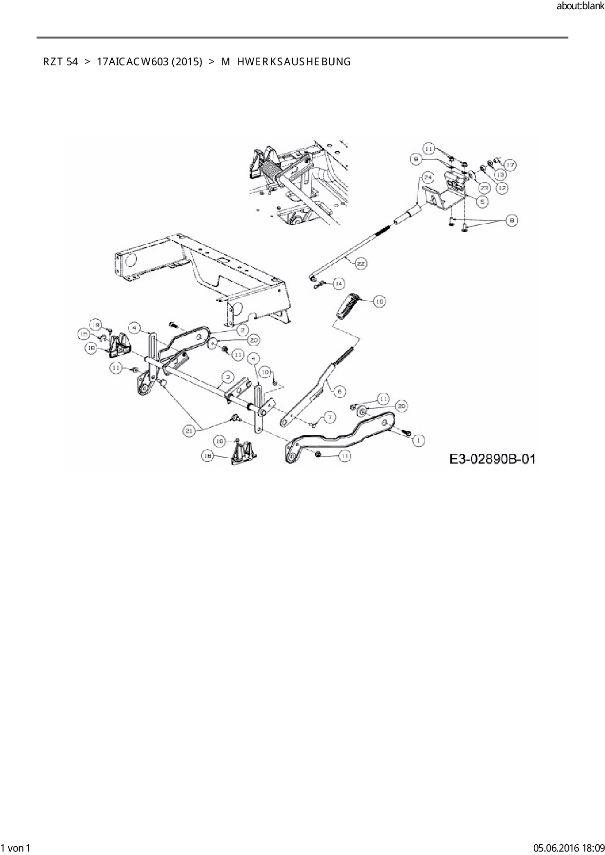 Download Ersatzteil-Zeichnung Cub Cadet RZT 54 Zeichnung Mähwerksaushebung (PDF-Format)