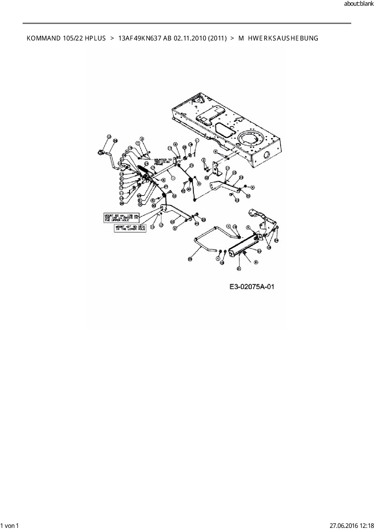 Ersatzteile für Rasentraktor EFCO Kommand 105/22 HPlus aus der Zeichnung Mähwerksaushebung: