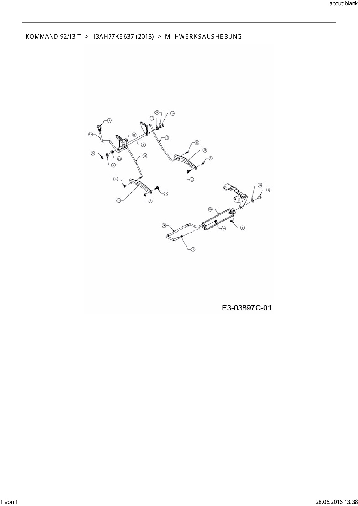 Ersatzteile für Rasentraktor EFCO Kommand 92/13 T aus der Zeichnung Mähwerksaushebung: