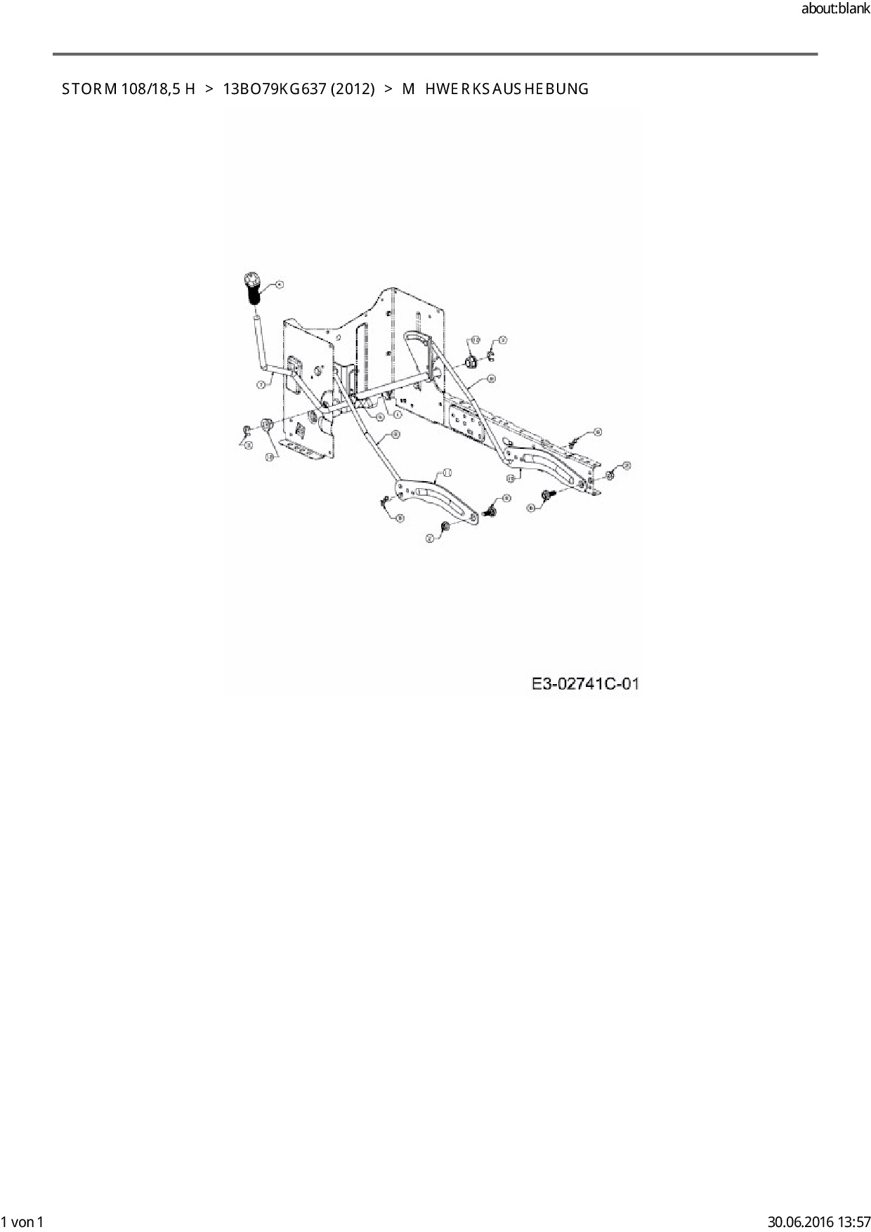 Ersatzteile für Rasentraktor EFCO Storm 108/18,5 H aus der Zeichnung Mähwerksaushebung: