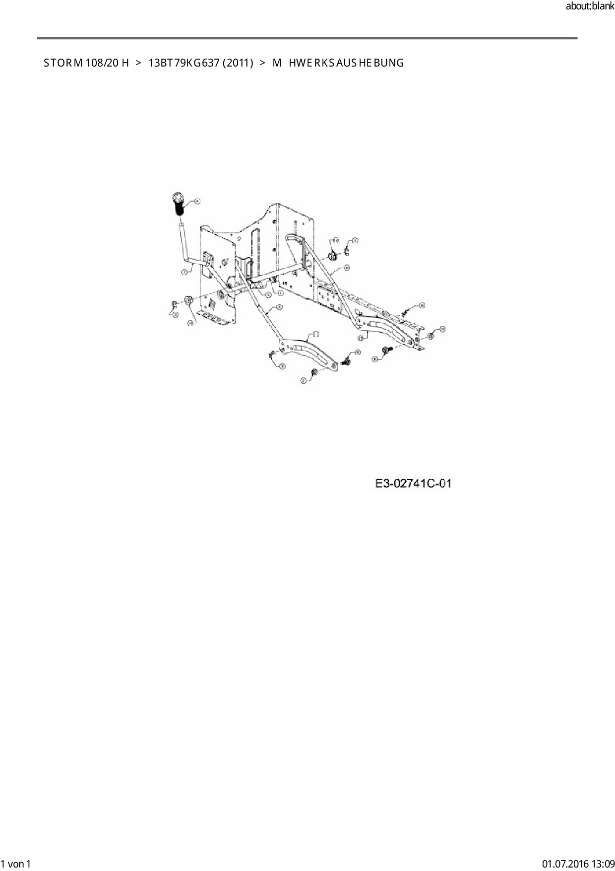 Ersatzteile für Rasentraktor EFCO Storm 108/20 H aus der Zeichnung Mähwerksaushebung: