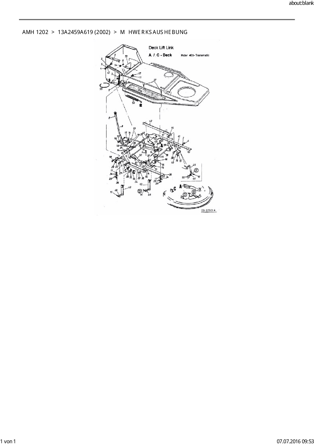 Zeichnung für FLEURELLE Rasentraktor AMH 1202 mit der Geräte-Artikelnr. 13A2459A619 ab Baujahr 2002: