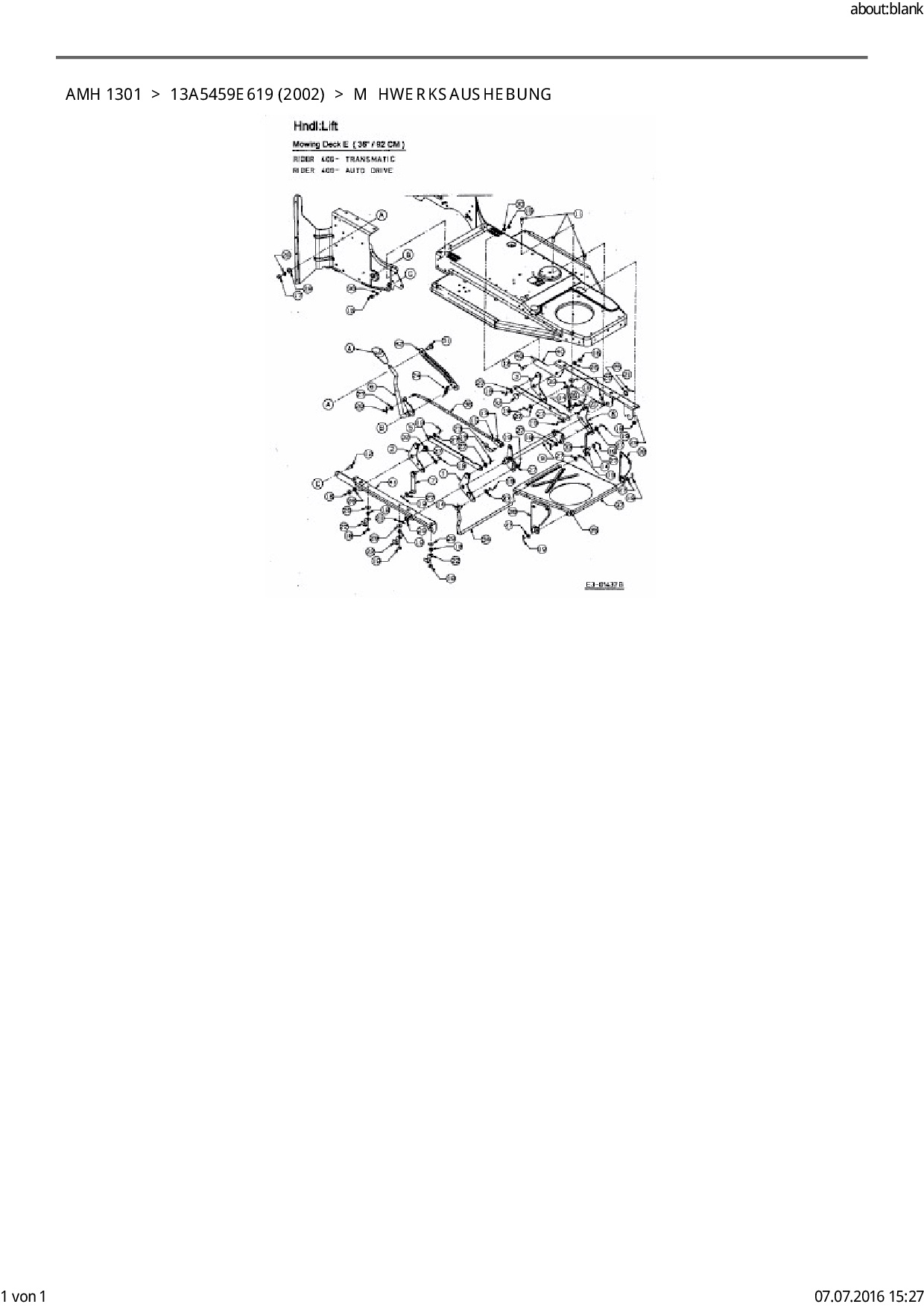 Ersatzteile für Rasentraktor FLEURELLE AMH 1301 aus der Zeichnung Mähwerksaushebung: