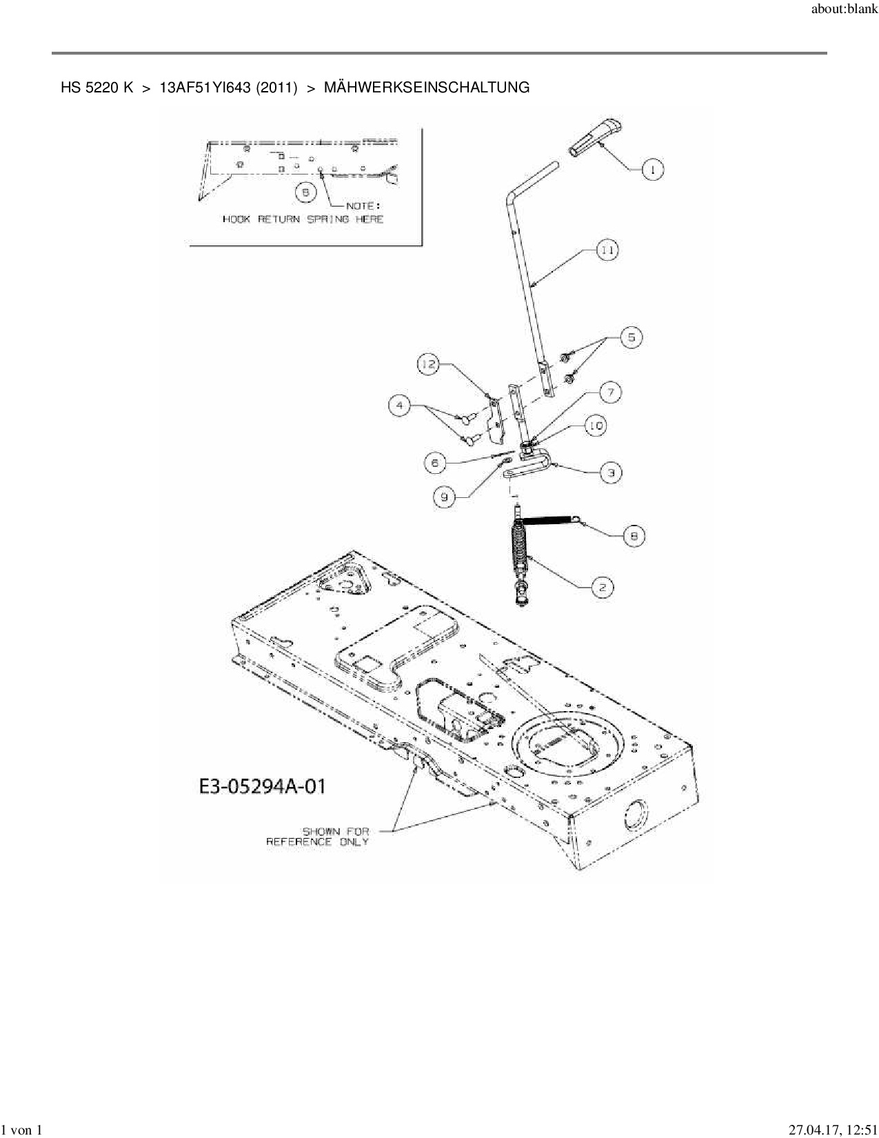 Ersatzteile für Rasentraktor Yard-Man HS 5220 K aus der Zeichnung Mähwerkseinschaltung: