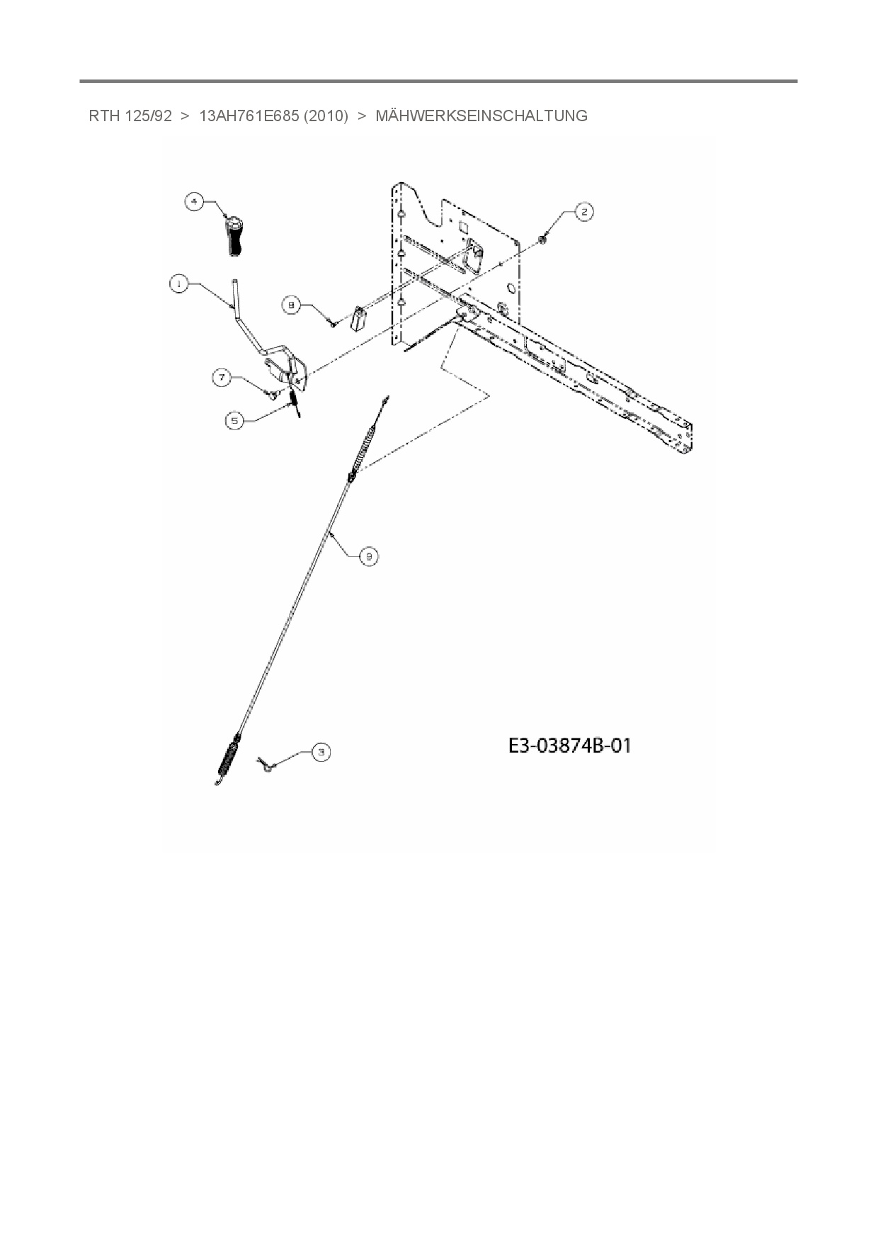 Ersatzteile für Rasentraktor Sunline RTH 125/92 aus der Zeichnung Mähwerkseinschaltung: