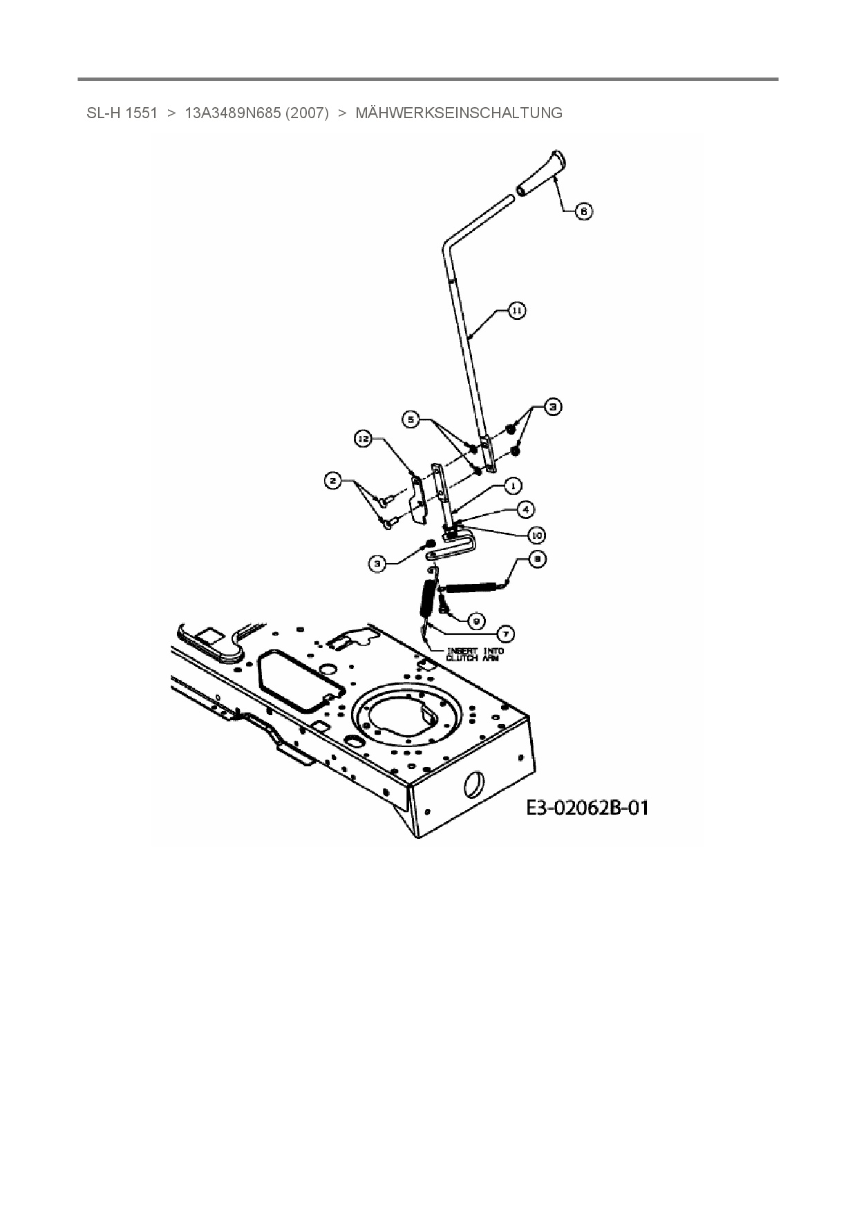 Ersatzteile für Rasentraktor Sunline SL-H 1551 aus der Zeichnung Mähwerkseinschaltung: