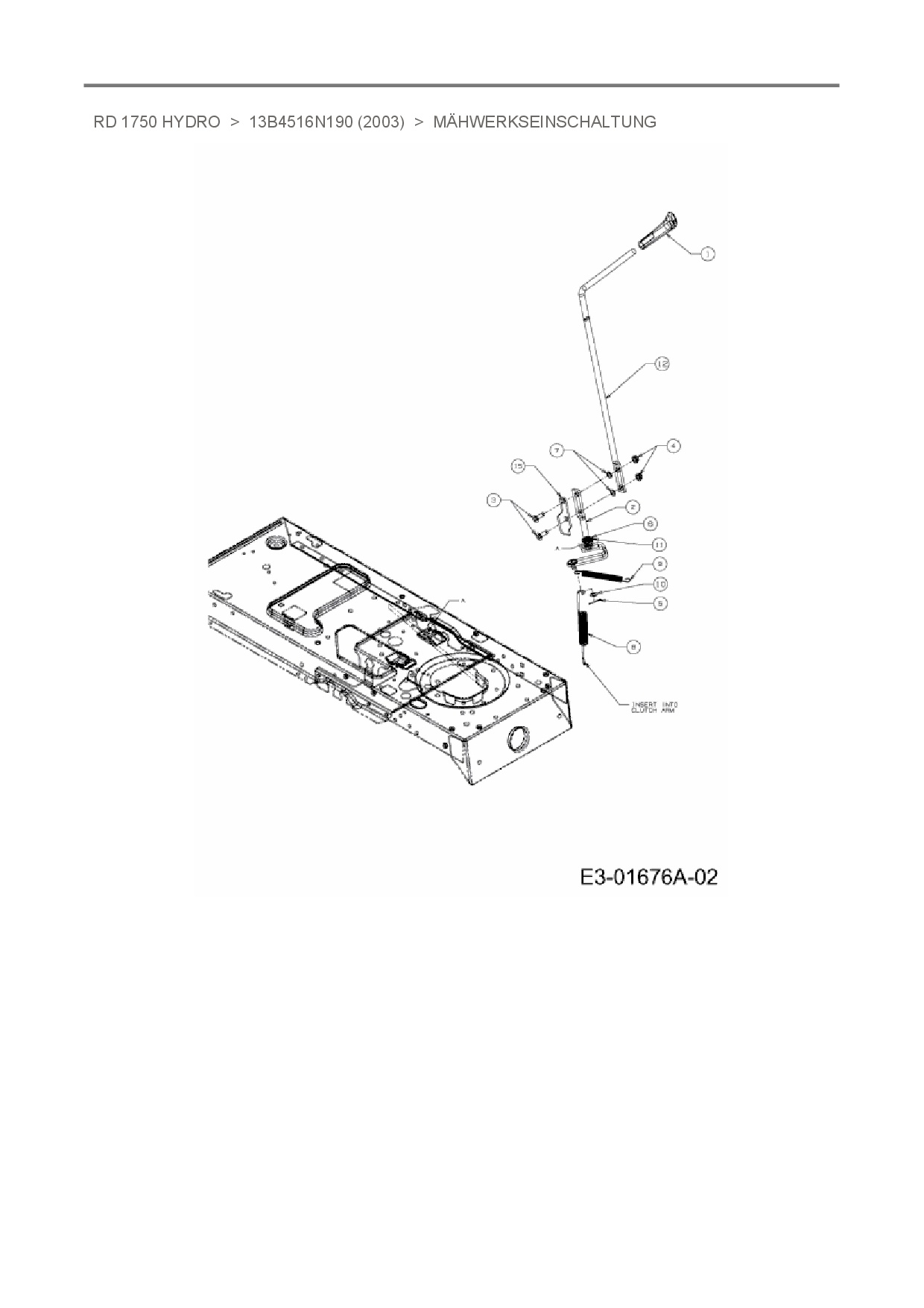 Ersatzteile für Rasentraktor White RD 1750 Hydro aus der Zeichnung Mähwerkseinschaltung: