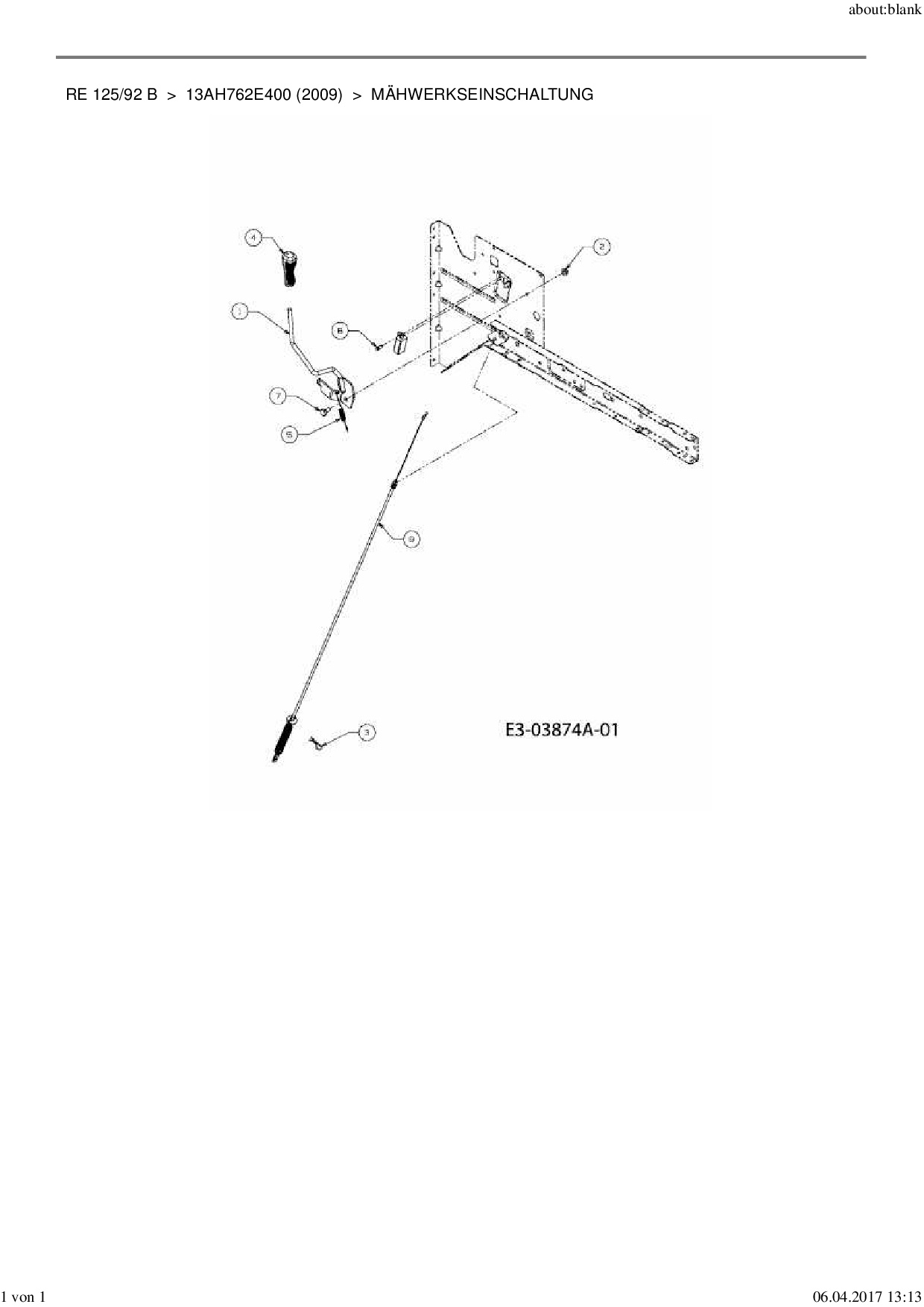 Ersatzteile für Rasentraktor MTD RE 125/92 B aus der Zeichnung Mähwerkseinschaltung: