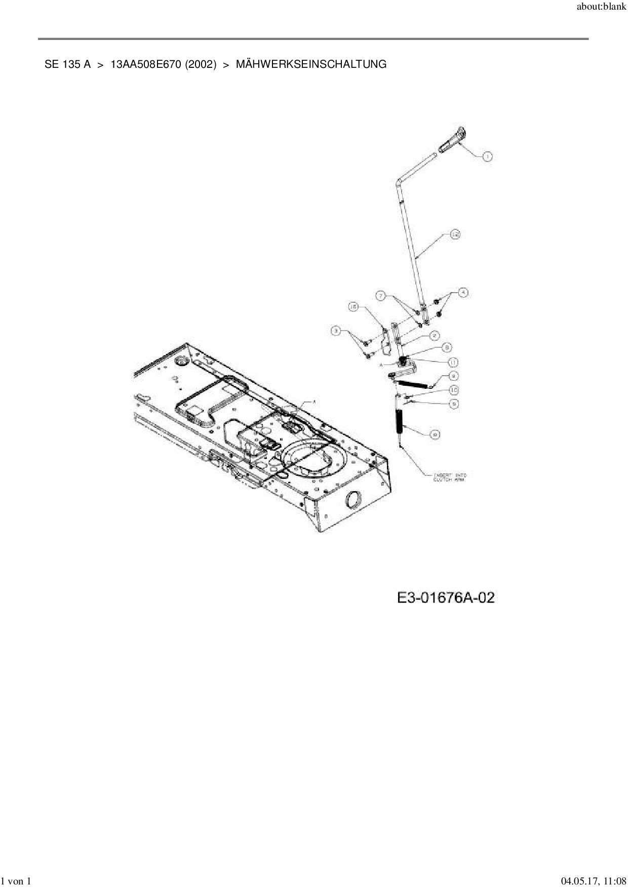 Ersatzteile für Rasentraktor MTD SE 135 A aus der Zeichnung Mähwerkseinschaltung: