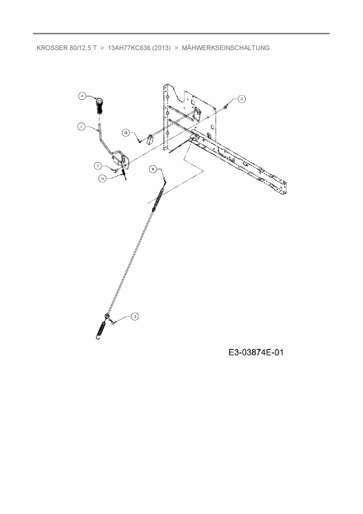Ersatzteile für Rasentraktor Oleo-Mac Krosser 80/12,5 T aus der Zeichnung Mähwerkseinschaltung: