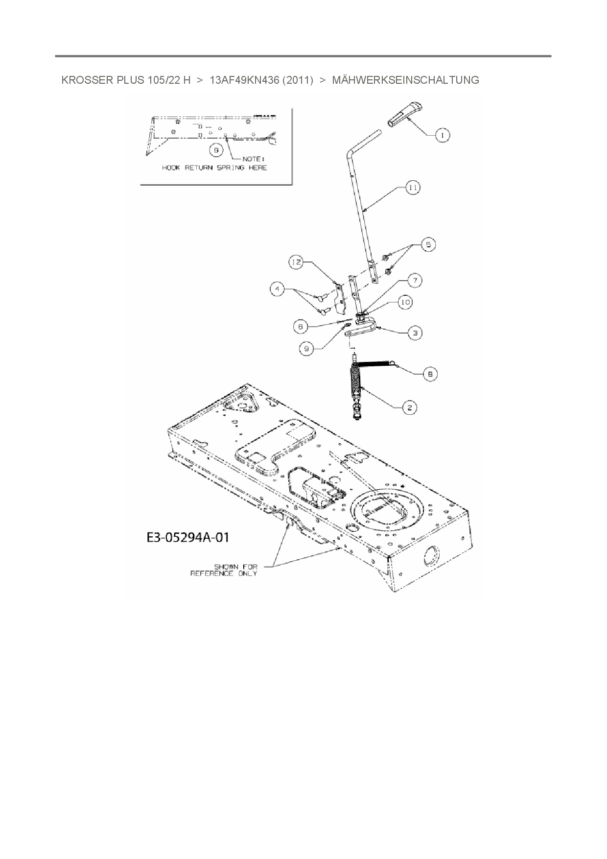Zeichnung für Oleo-Mac Rasentraktor Krosser Plus 105/22 H mit der Geräte-Artikelnr. 13AF49KN436 ab Baujahr 2011: