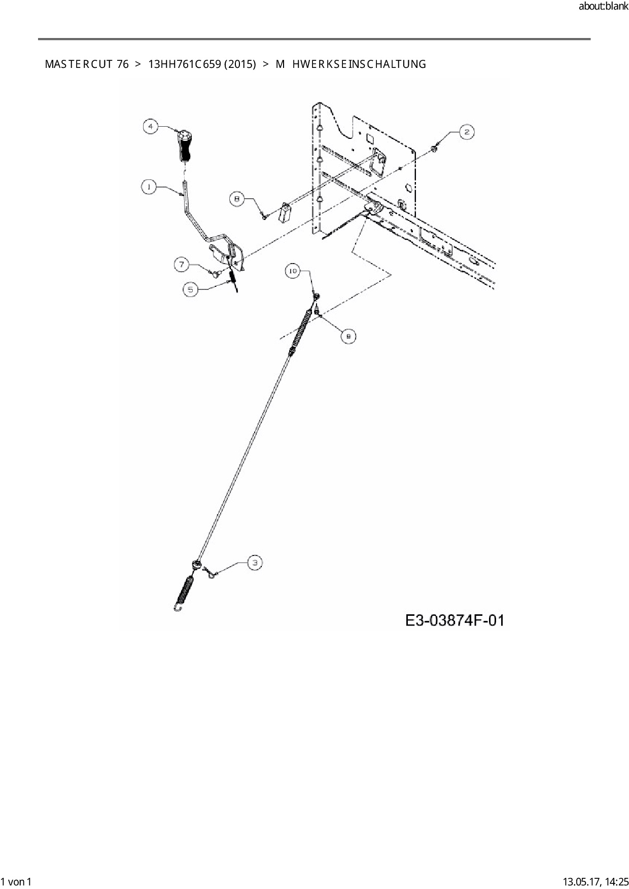 Ersatzteile für Rasentraktor Mastercut Mastercut 76 aus der Zeichnung Mähwerkseinschaltung: