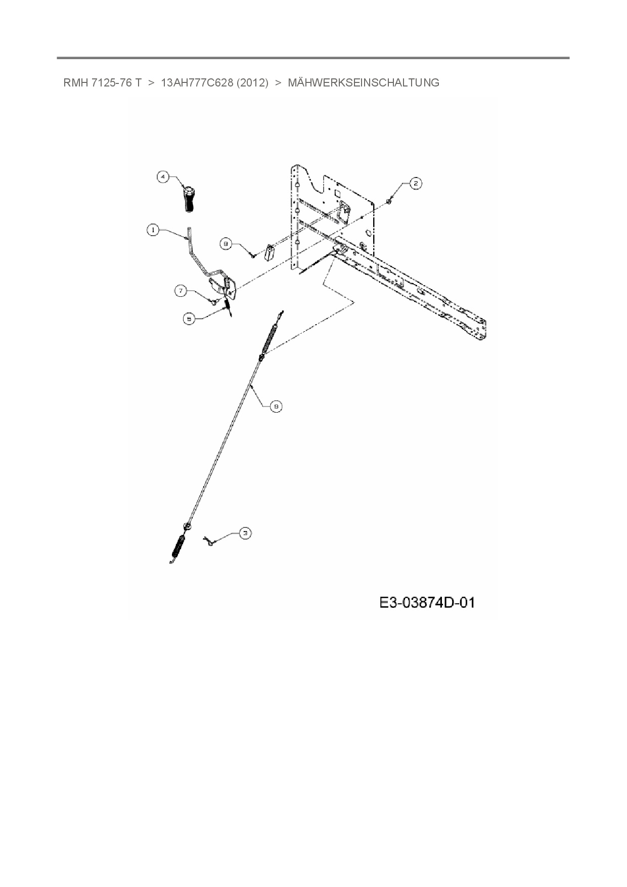 Ersatzteile für Rasentraktor Raiffeisen RMH 7125-76 T aus der Zeichnung Mähwerkseinschaltung: