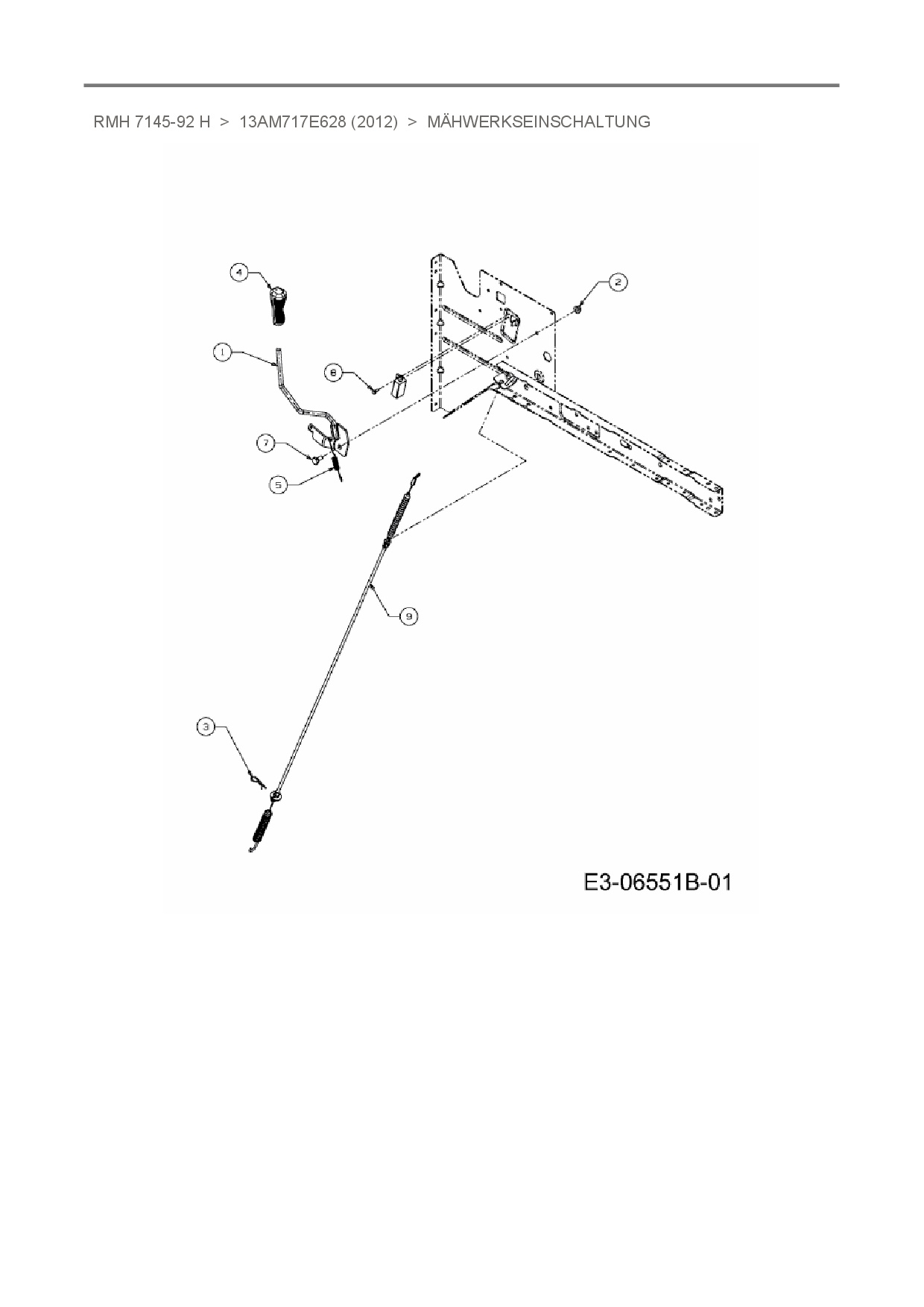 Ersatzteile für Rasentraktor Raiffeisen RMH 7145-92 H aus der Zeichnung Mähwerkseinschaltung: