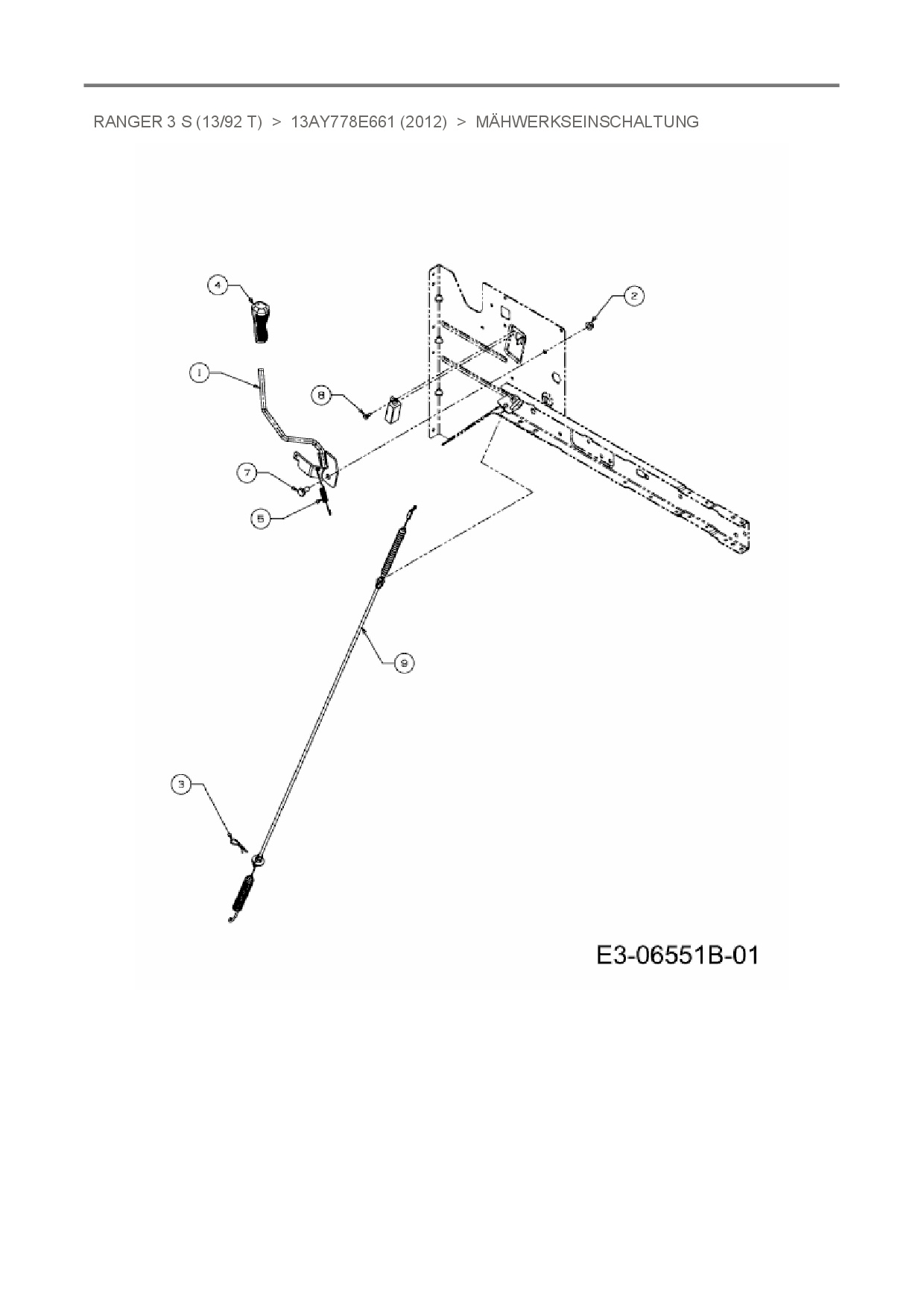 Ersatzteile für Rasentraktor Ranger Ranger 3 S (13/92 T) aus der Zeichnung Mähwerkseinschaltung: