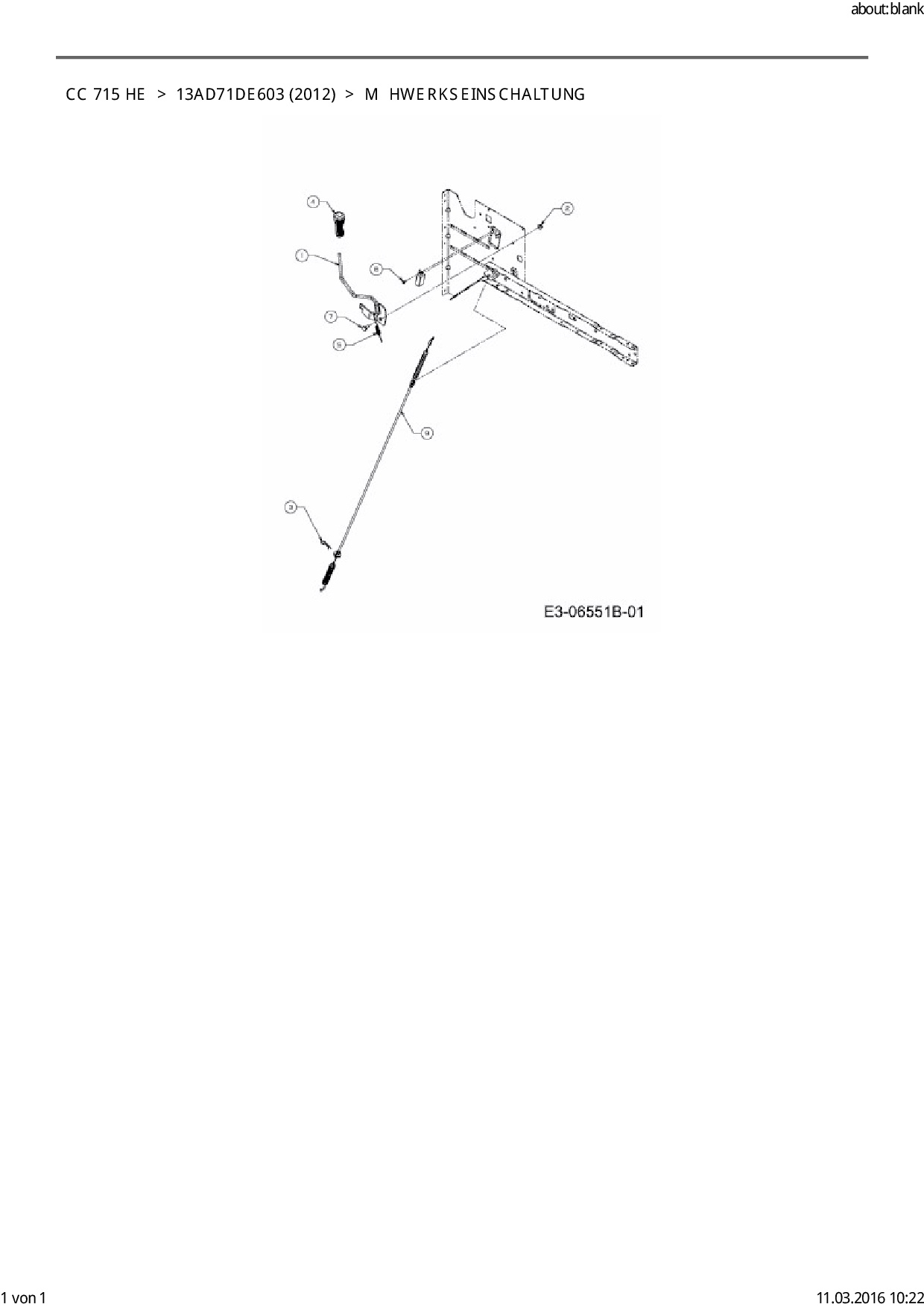 Ersatzteile für Rasentraktor Cub Cadet CC 715 HE aus der Zeichnung Mähwerkseinschaltung: