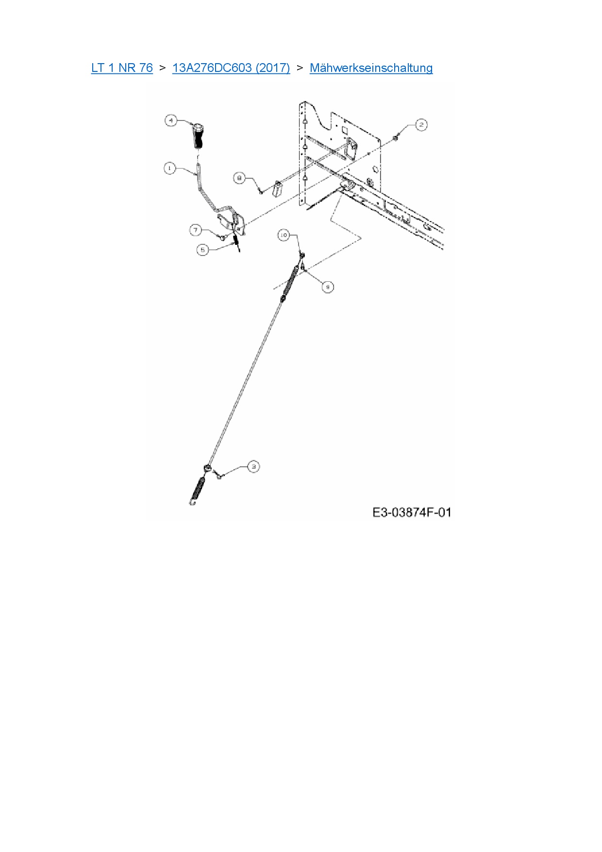 Ersatzteile für Rasentraktor Cub Cadet LT 1 NR 76 aus der Zeichnung Mähwerkseinschaltung: