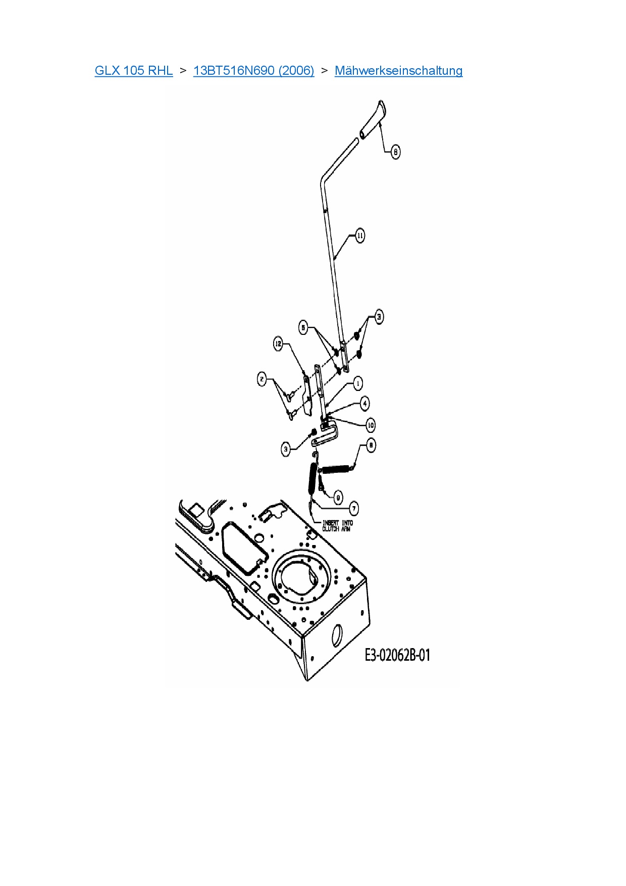 Ersatzteile für Rasentraktor Gutbrod GLX 105 RHL aus der Zeichnung Mähwerkseinschaltung: