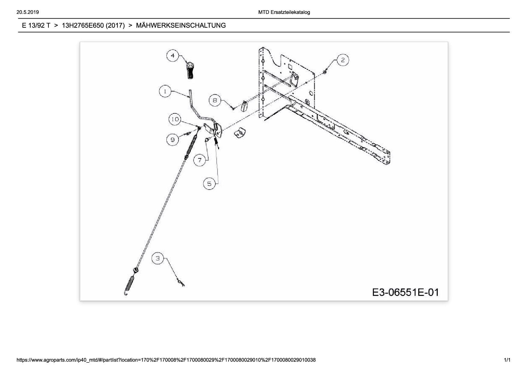 Ersatzteile für Rasentraktor Wolf-Garten Expert E 13/92 T aus der Zeichnung Mähwerkseinschaltung: