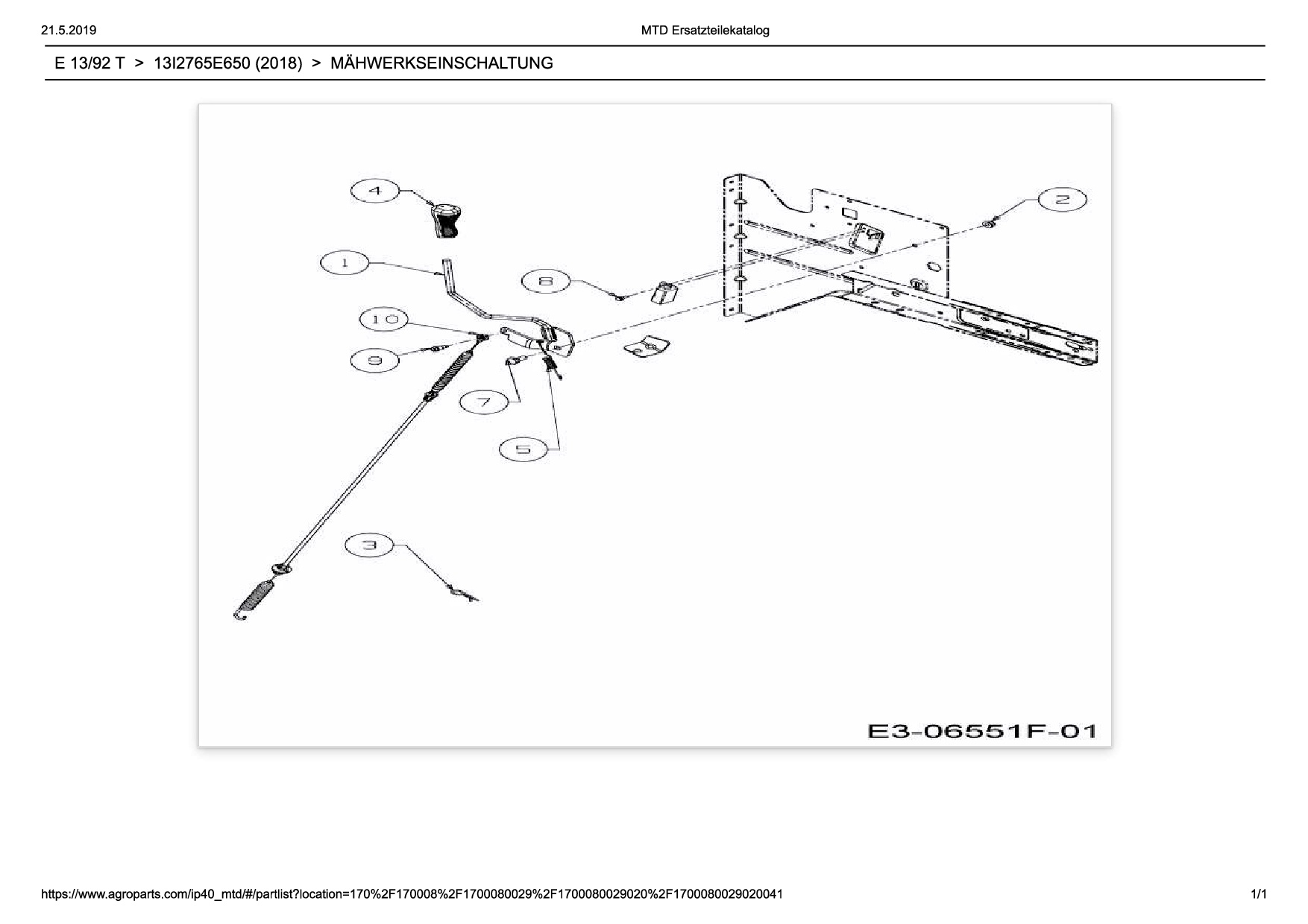 Ersatzteile für Rasentraktor Wolf-Garten Expert E 13/92 T aus der Zeichnung Mähwerkseinschaltung: