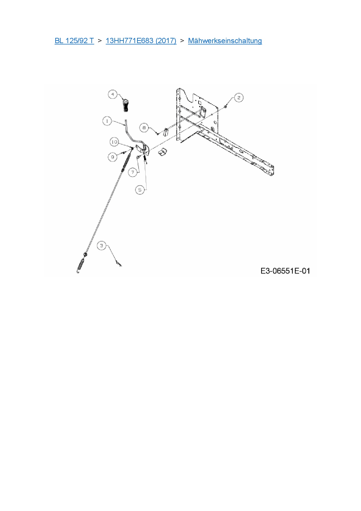 Ersatzteile für Rasentraktor Black-Line BL 125/92 T aus der Zeichnung Mähwerkseinschaltung: