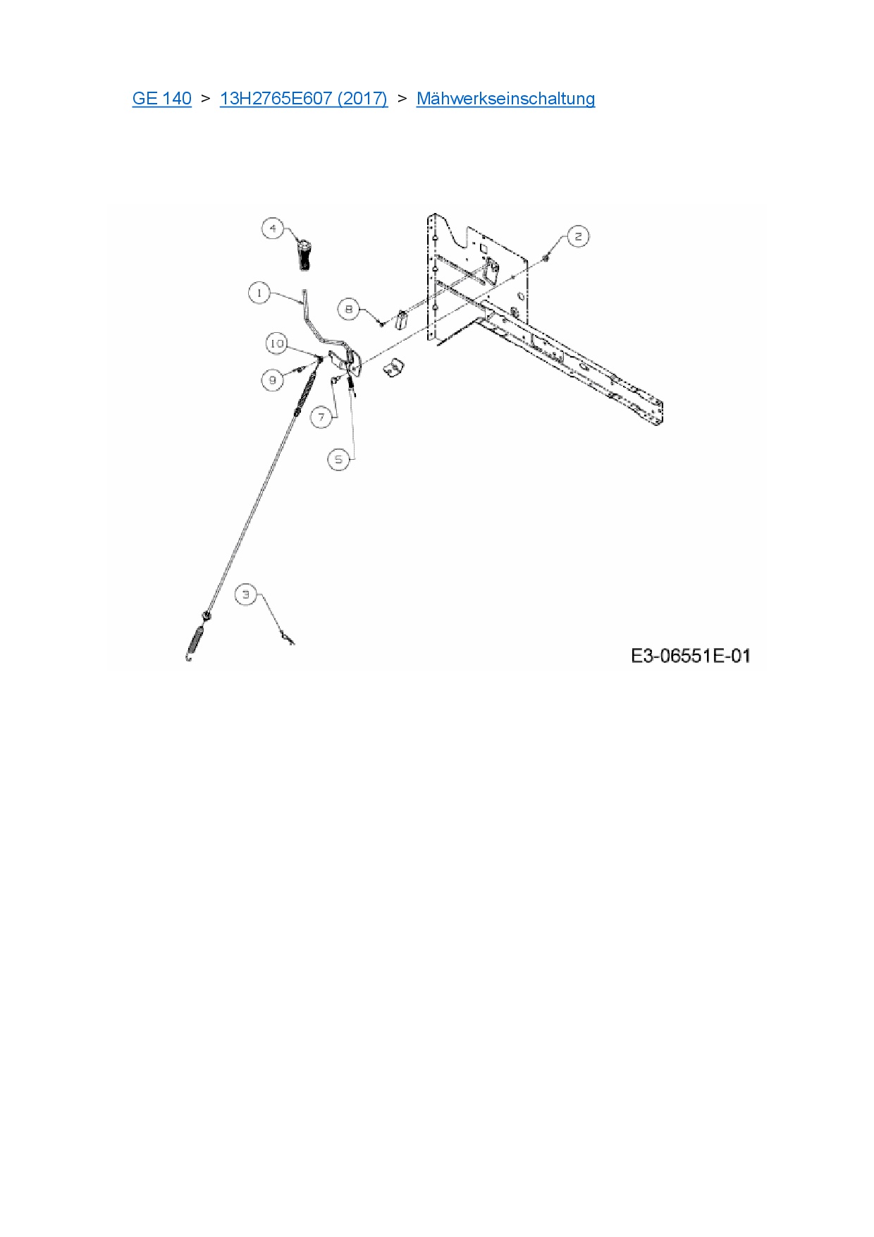 Ersatzteile für Rasentraktor Blisar GE 140 aus der Zeichnung Mähwerkseinschaltung:
