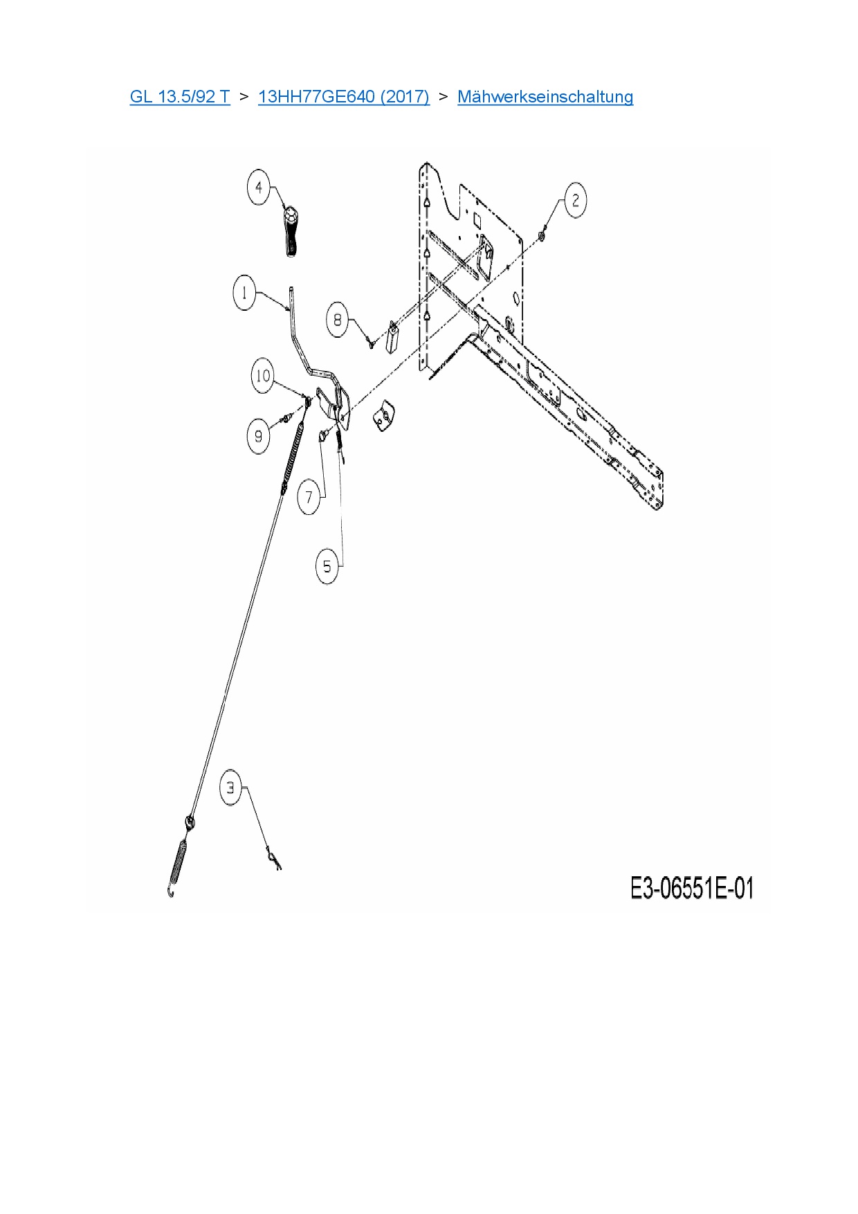Ersatzteile für Rasentraktor Gartenland GL 13.5/92 T aus der Zeichnung Mähwerkseinschaltung: