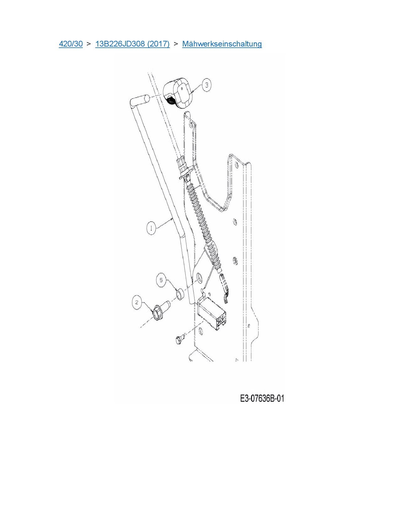 Ersatzteile für Rasentraktor MTD 420/30 aus der Zeichnung Mähwerkseinschaltung: