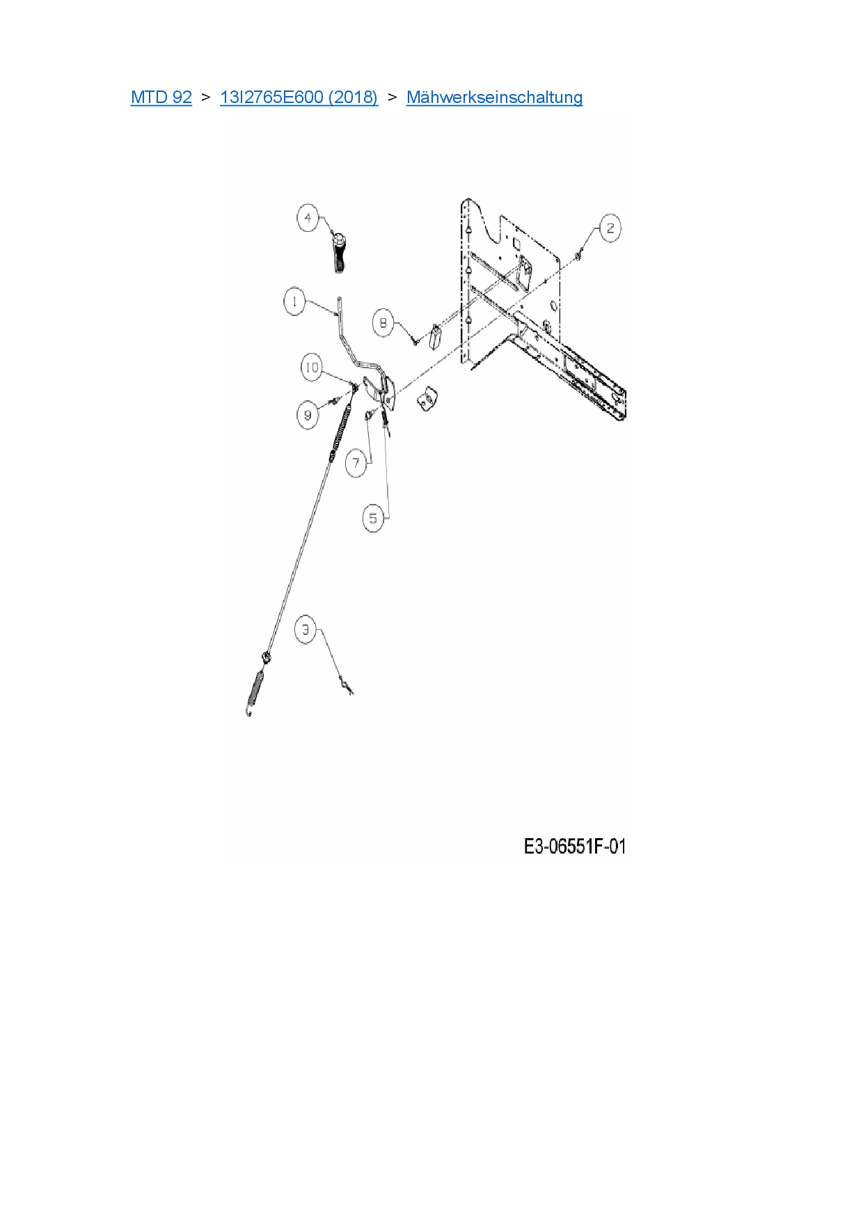Ersatzteile für Rasentraktor MTD MTD 92 aus der Zeichnung Mähwerkseinschaltung: