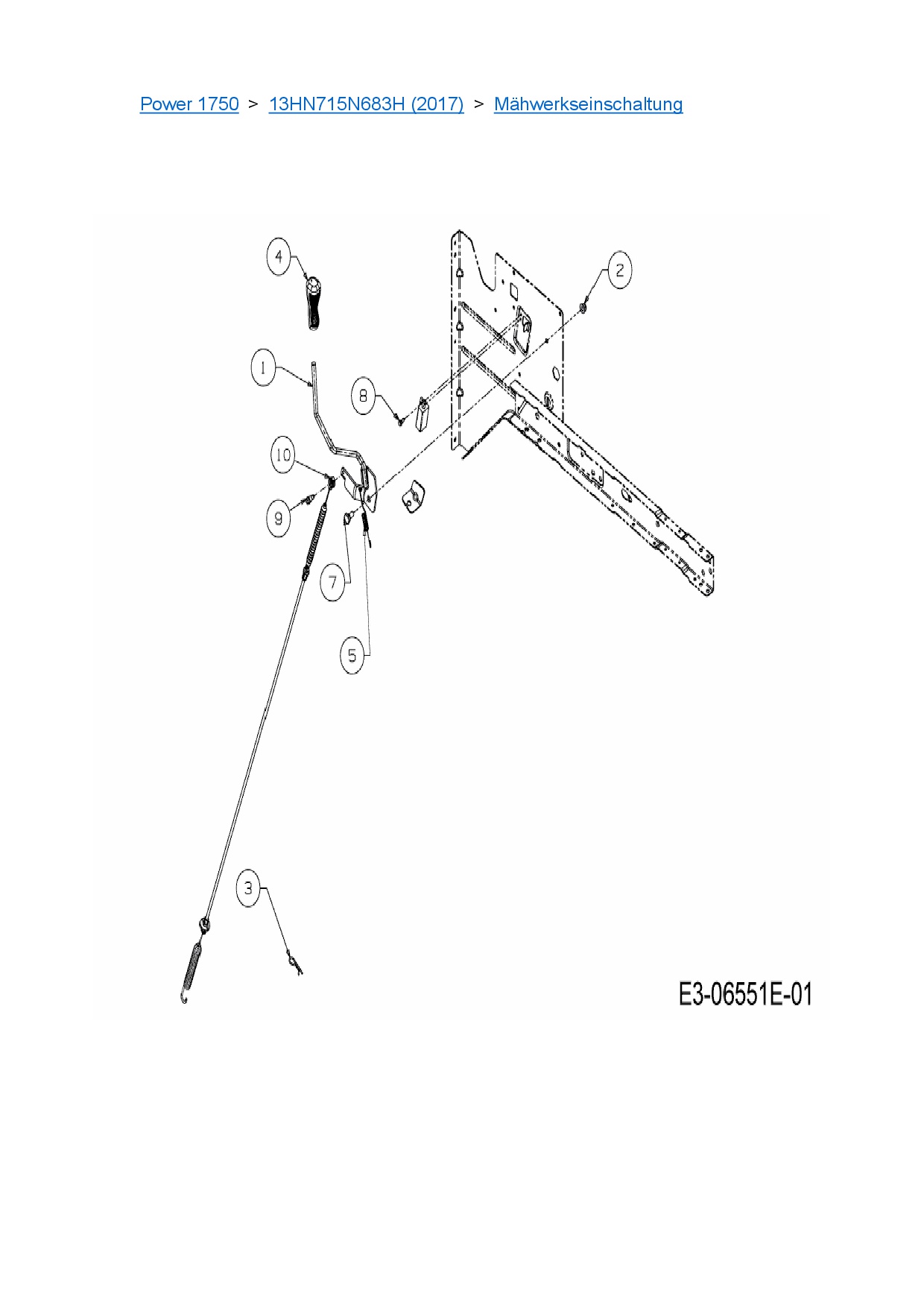 Ersatzteile für Rasentraktor MTD Power 1750 aus der Zeichnung Mähwerkseinschaltung:
