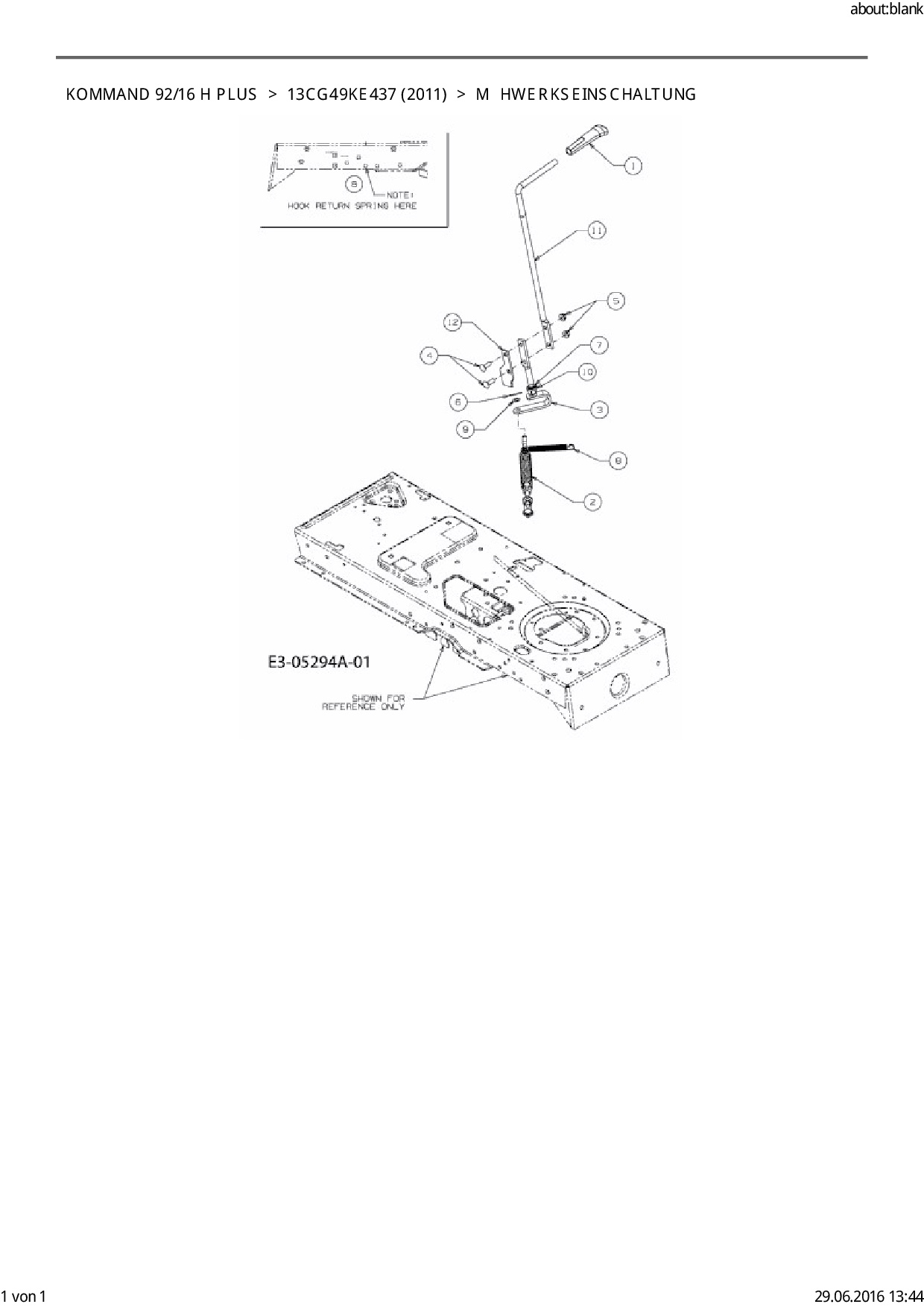 Ersatzteile für Rasentraktor EFCO Kommand 92/16 H Plus aus der Zeichnung Mähwerkseinschaltung: