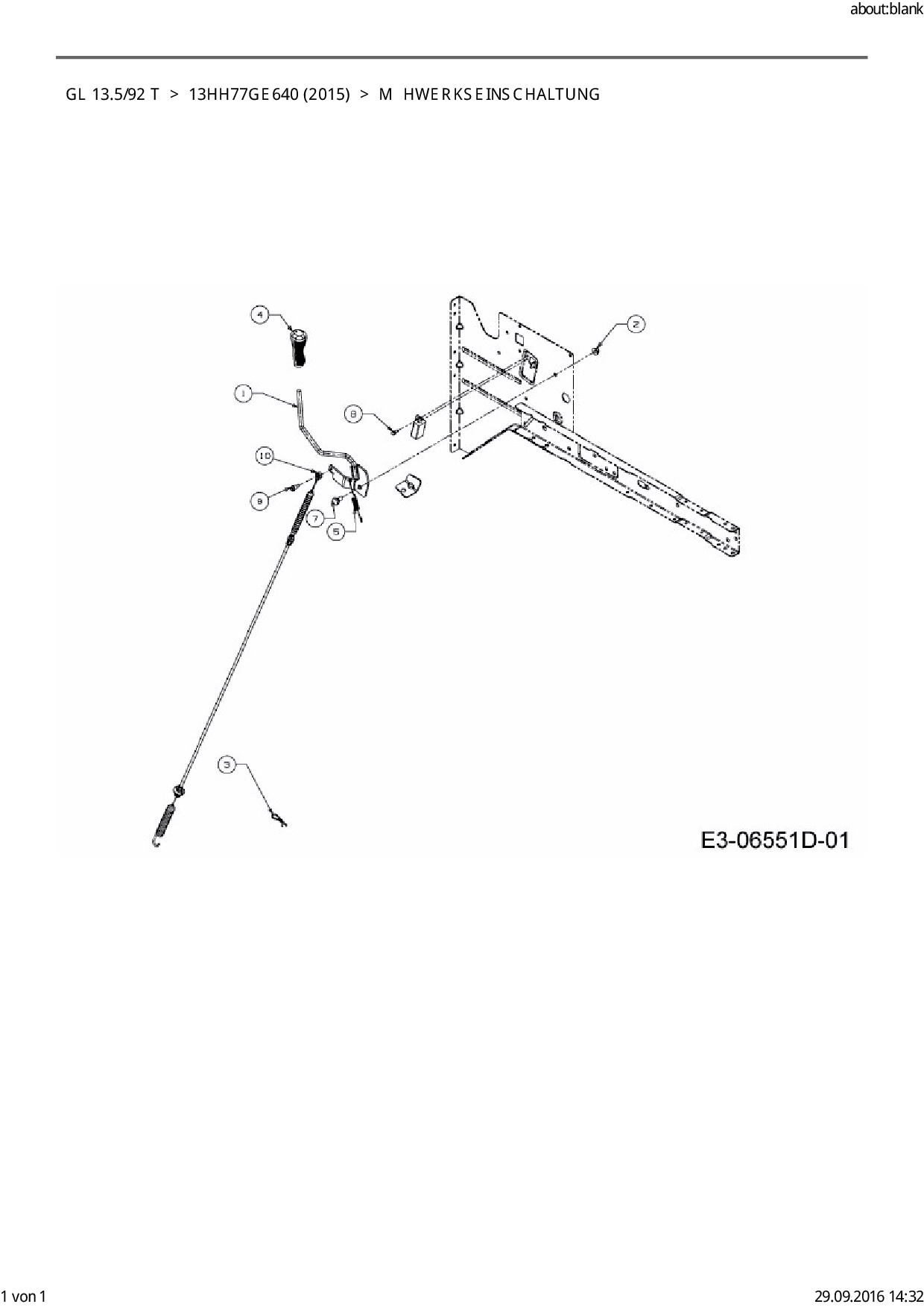 Ersatzteile für Rasentraktor Gartenland GL 13.5/92 T aus der Zeichnung Mähwerkseinschaltung: