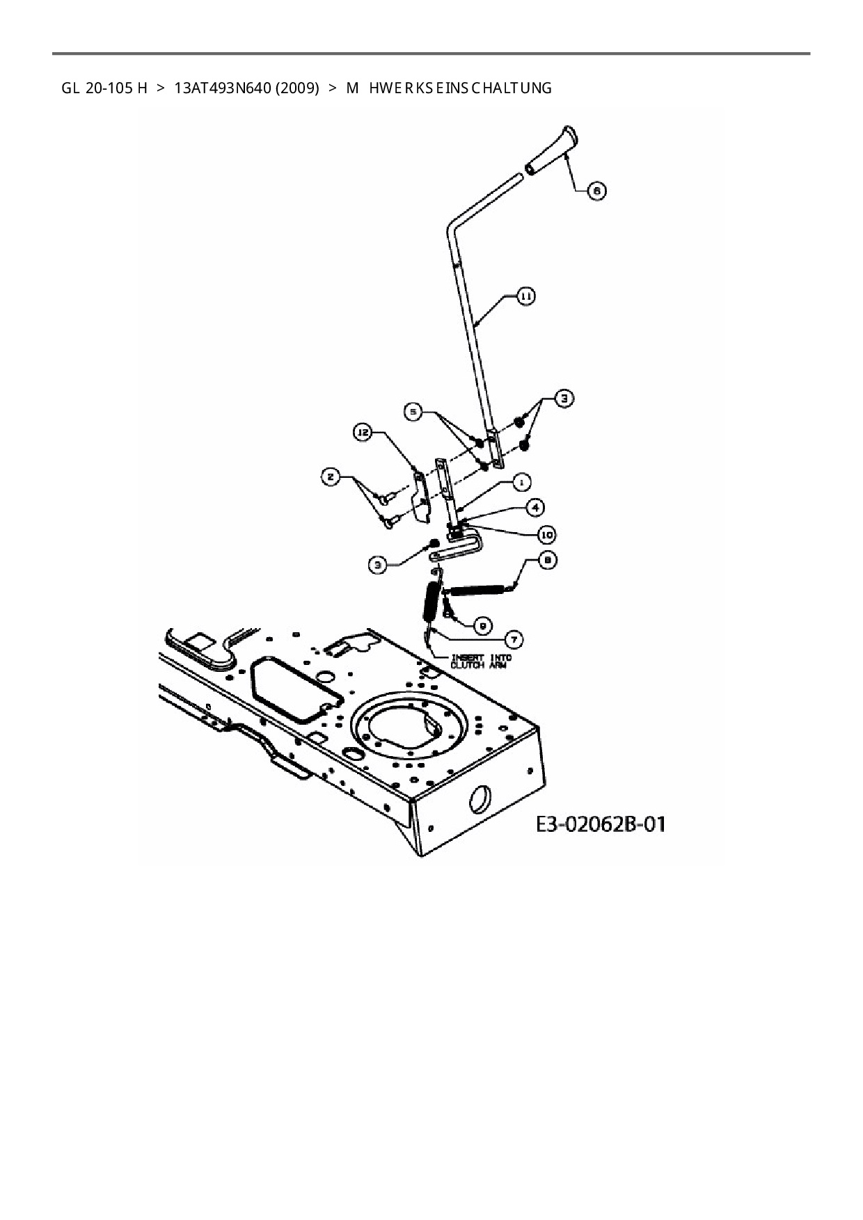 Ersatzteile für Rasentraktor Gartenland GL 20-105 H aus der Zeichnung Mähwerkseinschaltung: