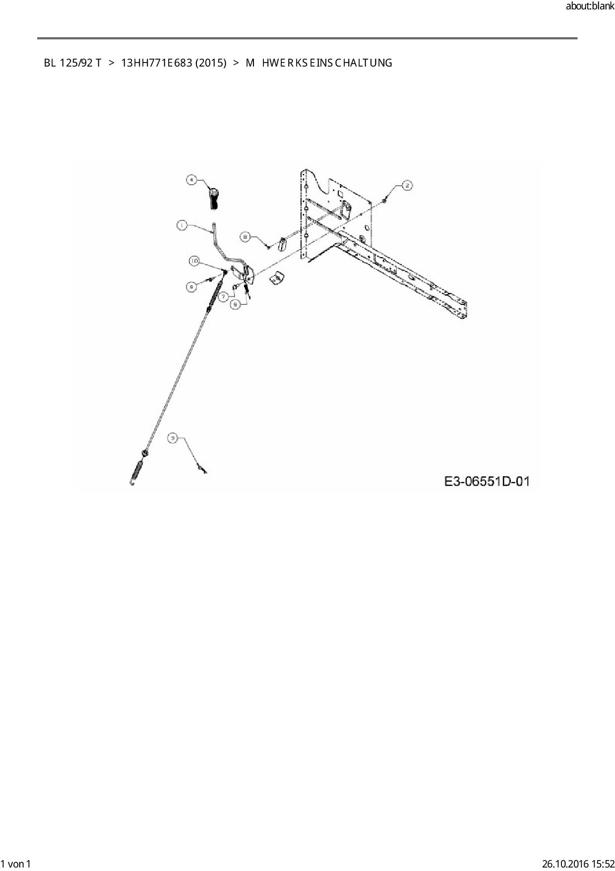 Ersatzteile für Rasentraktor Black-Line BL 125/92 T aus der Zeichnung Mähwerkseinschaltung: