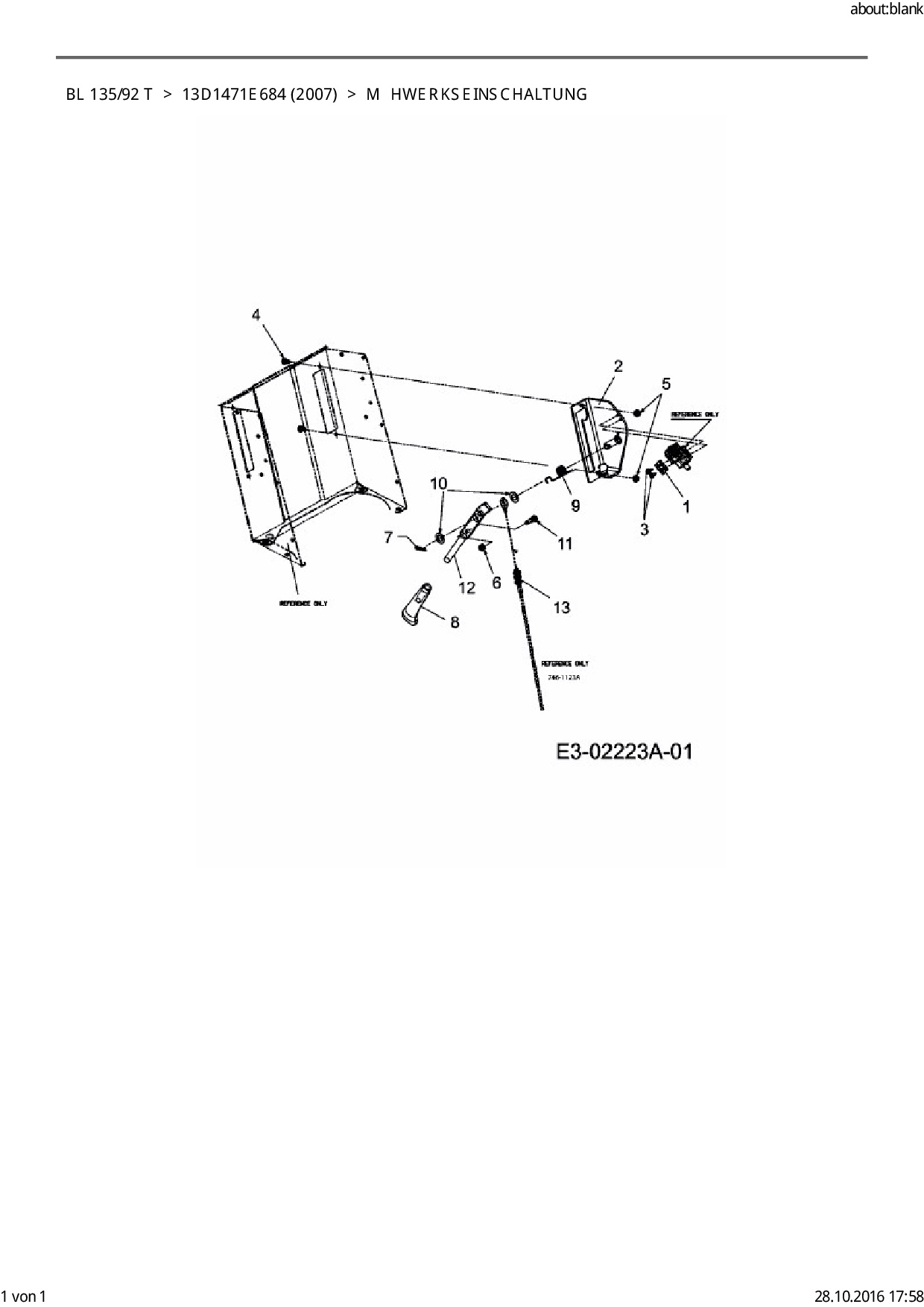 Ersatzteile für Rasentraktor Bolens BL 135/92 T aus der Zeichnung Mähwerkseinschaltung:
