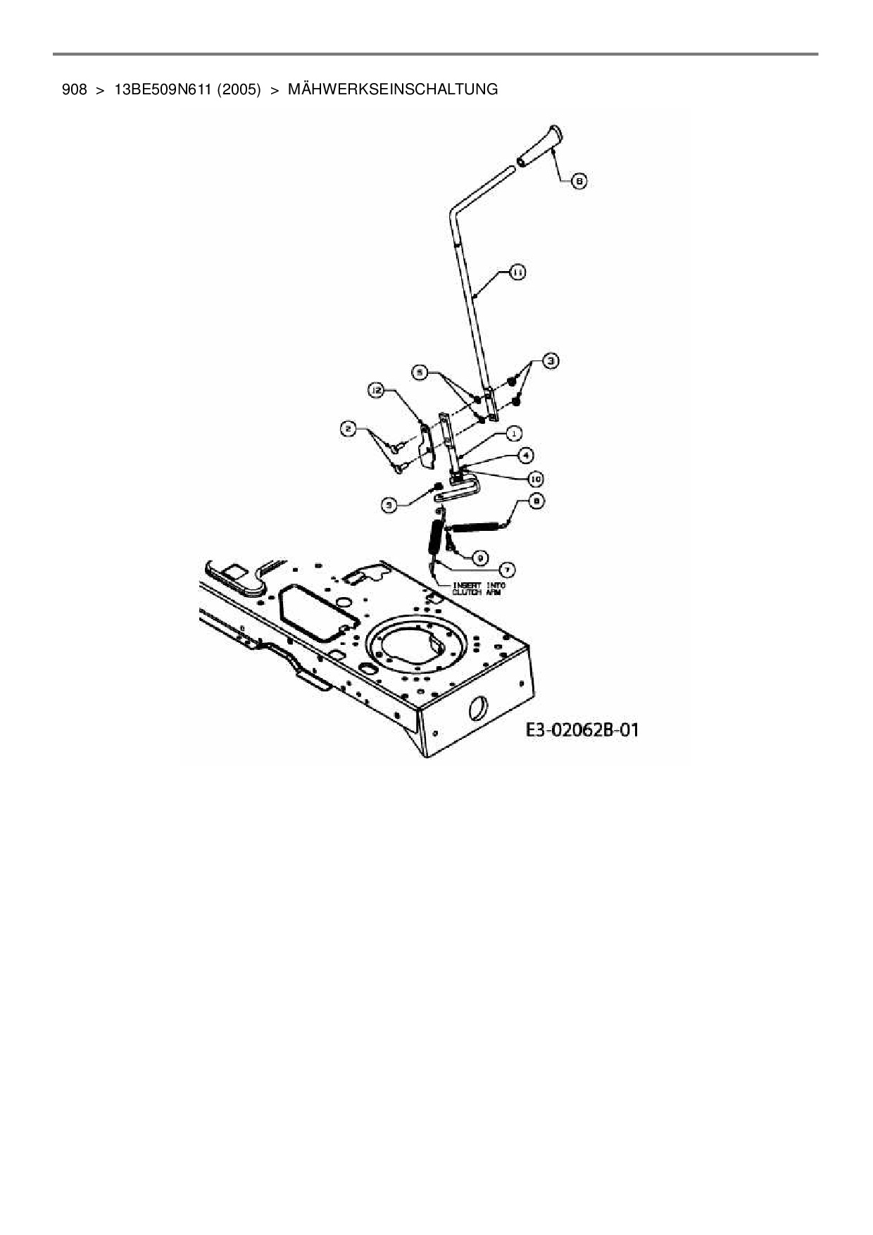 Ersatzteile für Rasentraktor Lawnflite 908 aus der Zeichnung Mähwerkseinschaltung: