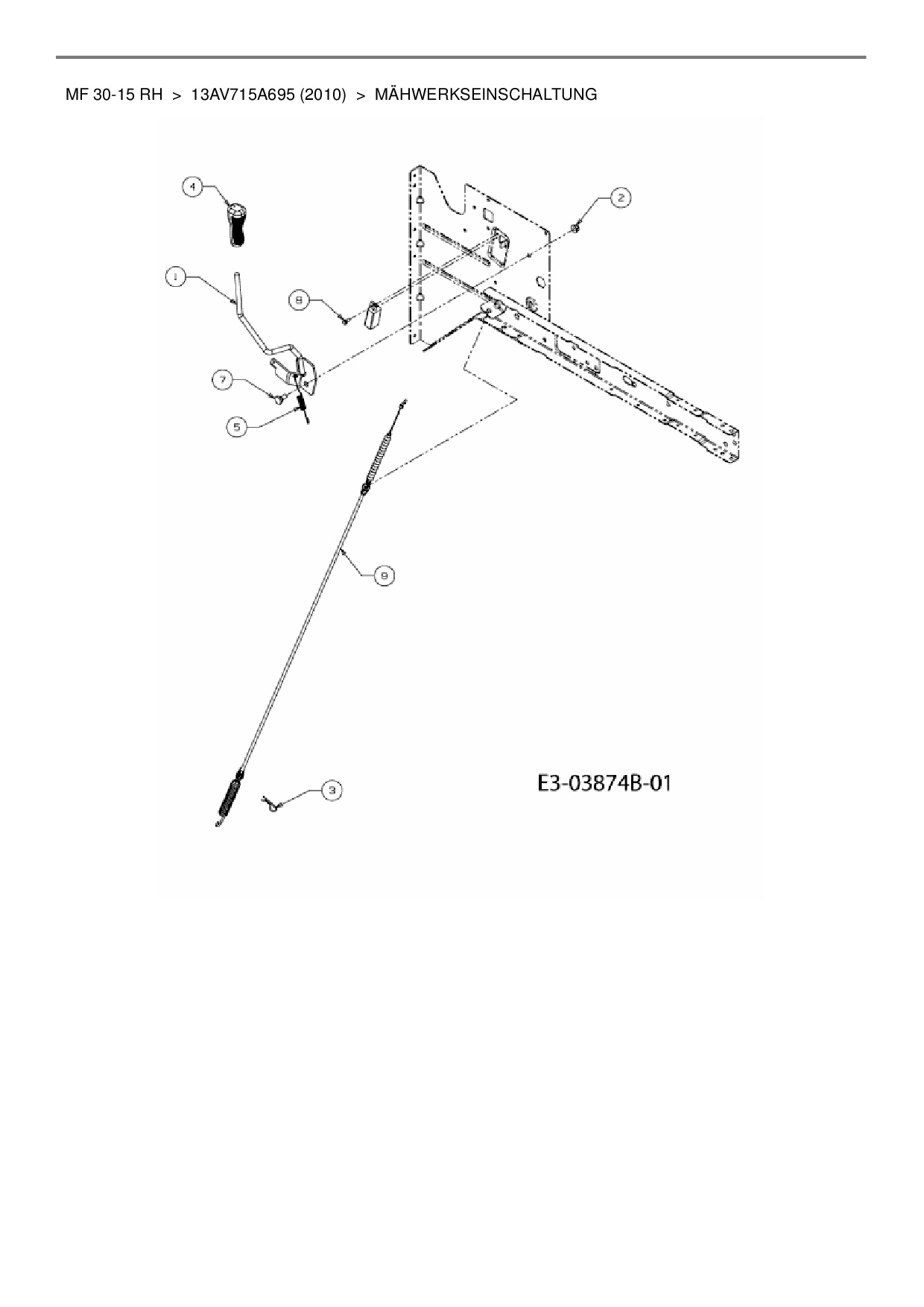 Ersatzteile für Rasentraktor Massey Ferguson MF 30-15 RH aus der Zeichnung Mähwerkseinschaltung: